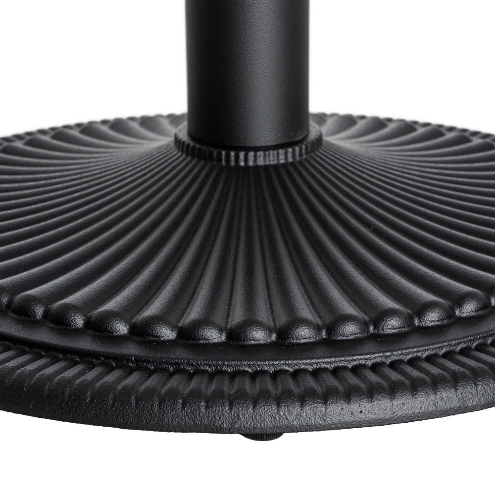 Picior de masă robust pentru mese de bar și HoReCa, realizat din fontă neagră, cu coloană cilindrică și bază rotundă decorată în relief. Designul său îmbină rezistența și eleganța, fiind ideal pentru spații profesionale precum cafenele, baruri și restaurante.