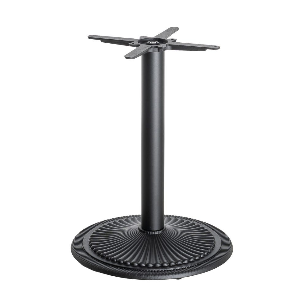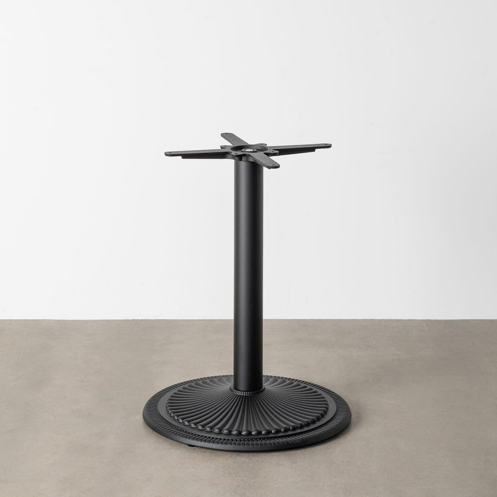 Suport stabil pentru mese de dining și HoReCa, realizat din fontă neagră durabilă, cu picior cilindric și bază rotundă decorată în relief. Construcția robustă este ideală pentru utilizare intensă în restaurante, cafenele sau spații de ospitalitate unde stabilitatea și estetica sunt esențiale.