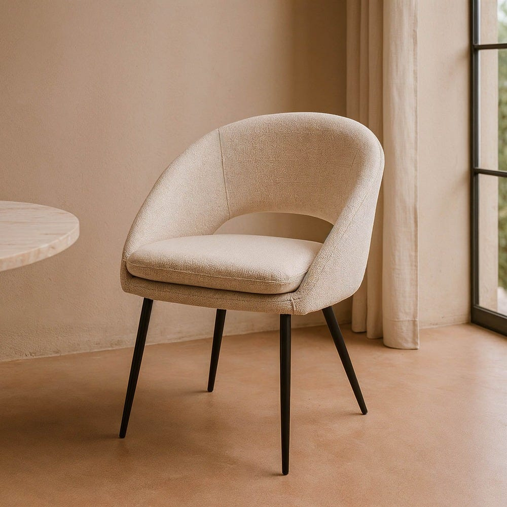 Acest set de 2 scaune crem pentru dining aduce în prim-plan eleganța stilului minimalist, combinând liniile fluide cu tapițeria moale din stofă, pentru un ambient modern și plin de rafinament.