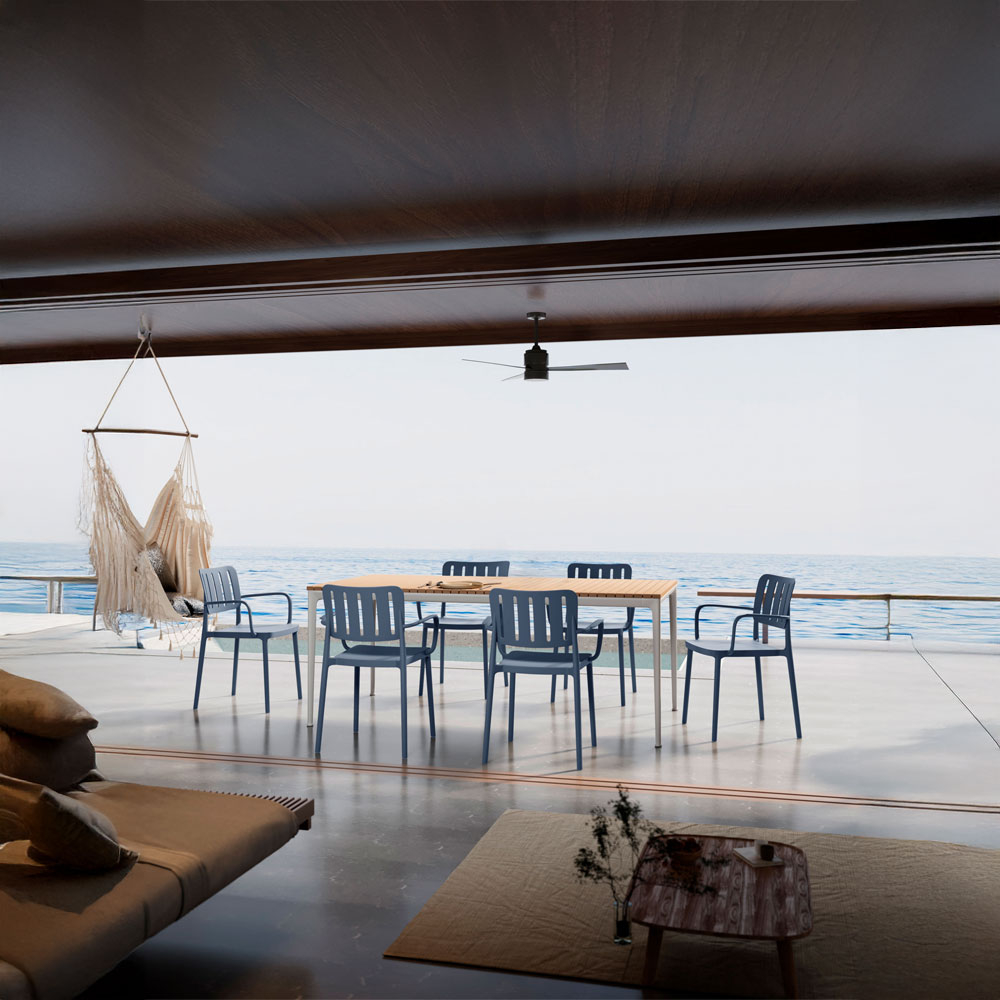Setul de 4 scaune din polipropilenă albastră aduce calm și profunzime într-un design modern, potrivit pentru spații bine organizate. Se integrează ușor în dining sau pe terasă, unde albastrul se combină plăcut cu tonuri neutre și texturi naturale. Este o alegere practică pentru interior, exterior și HoReCa datorită protecției UV și materialului rezistent.
