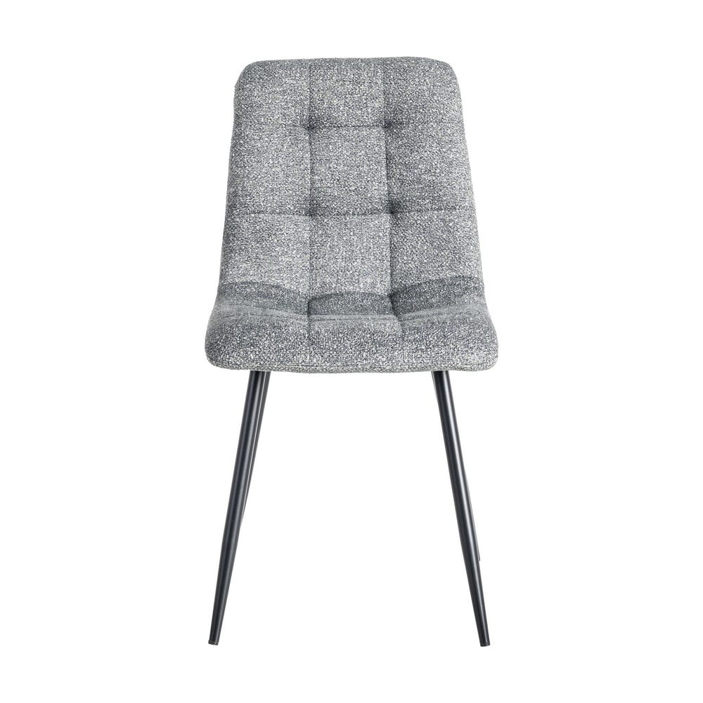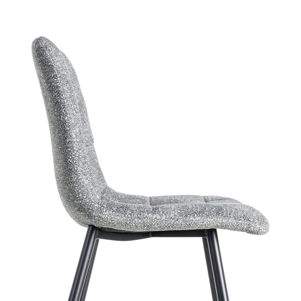 Set de 2 scaune din stofă gri antracit cu quilting subtil și picioare metalice negre. Tonul închis adaugă profunzime decorului și oferă un accent contemporan potrivit în interioare urbane, industrial-chic și minimaliste.
