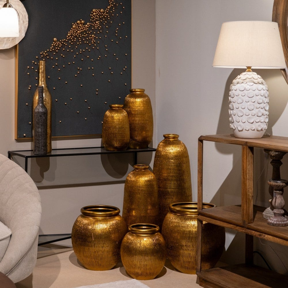 Așaz-o pe o comodă din lemn deschis sau pe o măsuță laterală și combin-o cu obiecte ceramice mate ori textile naturale pentru un decor echilibrat.