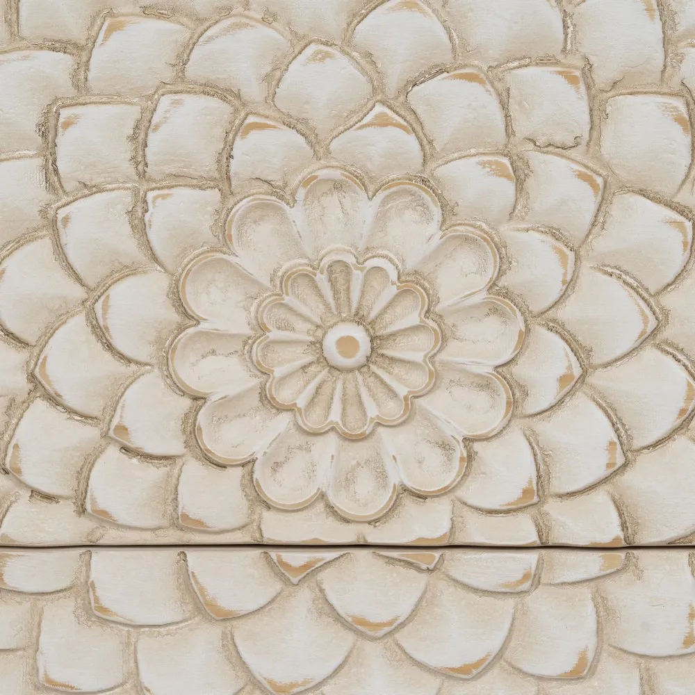 Noptiera înaltă cu 3 sertare sculptate, măsurând 64x36x71 cm, este o piesă de mobilier impresionantă și practică. Cele 3 sertare de 64x17 cm prezintă un model floral sculptat, oferind un contrast superb între albul antichizat și corpul maro închis. Realizată din lemn de pin și MDF, această noptieră oferă spațiu amplu de depozitare. Importată de CreativDeco, această piesă spaniolă adaugă înălțime și eleganță vintage în dormitor. Noptierele înalte cu sertare sculptate sunt ideale pentru a maximiza spațiul de depozitare într-un mod artistic.