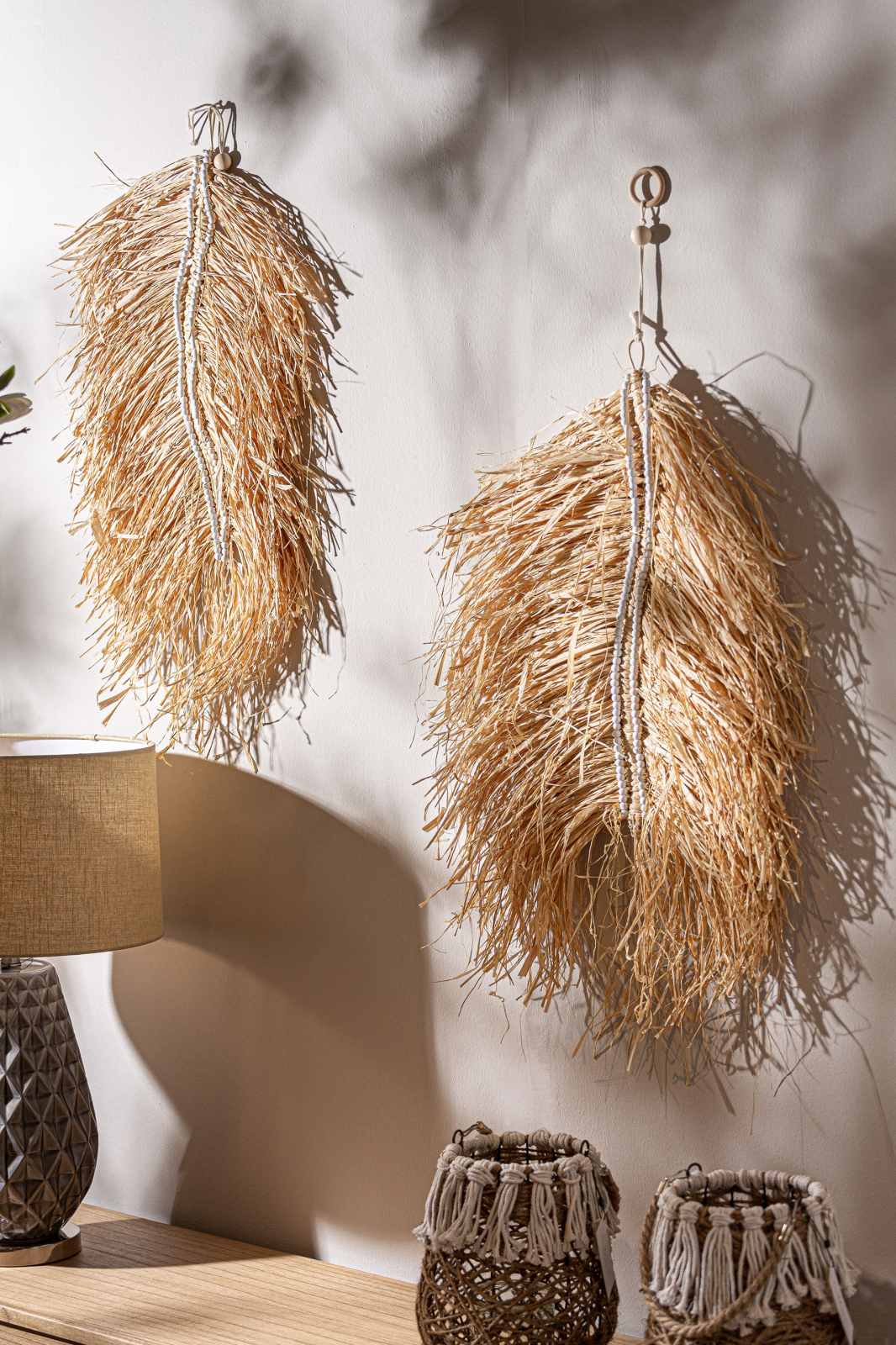 Setul de panouri Kasses din rafie naturala transforma orice perete intr-o opera de arta texturata. Designul Boho si aspectul artizanal aduc un plus de personalitate si caldura oricarui spatiu modern.