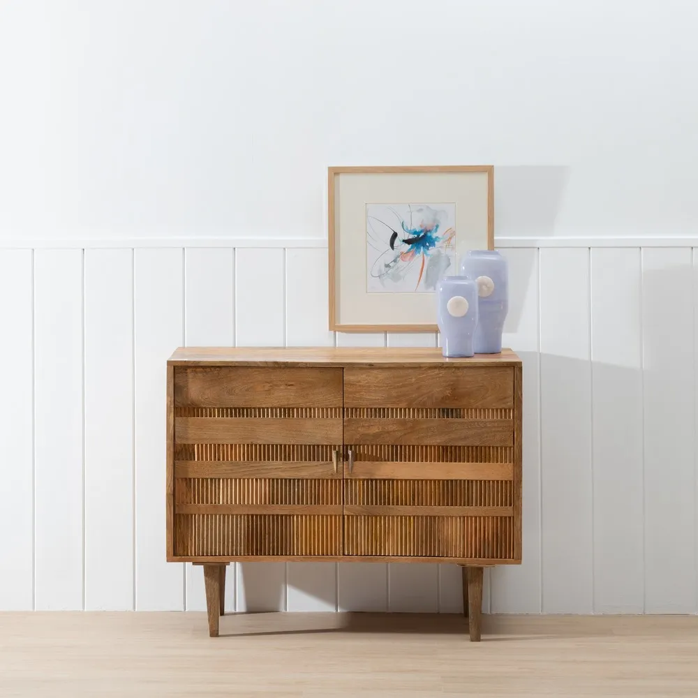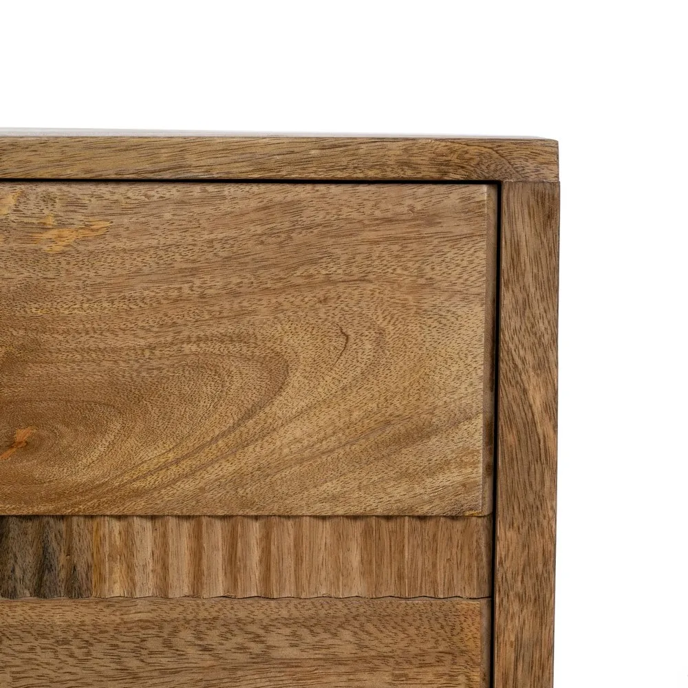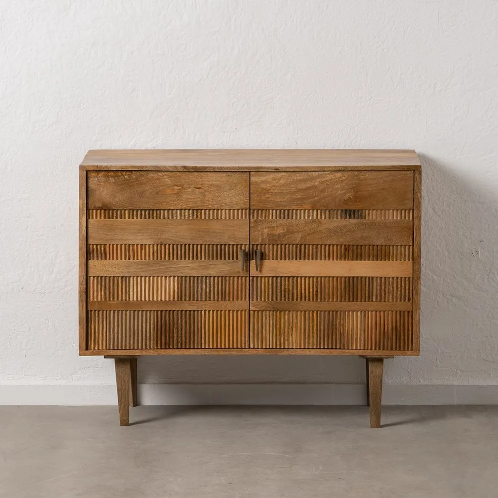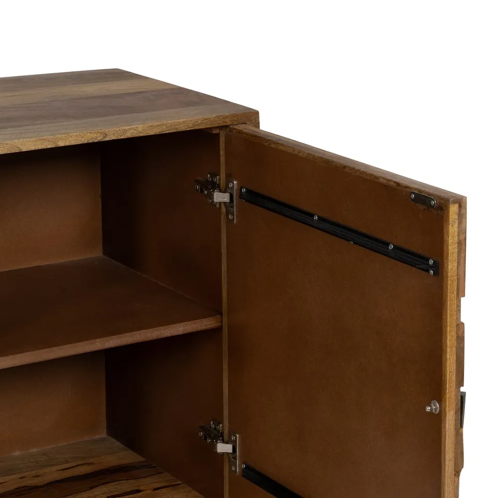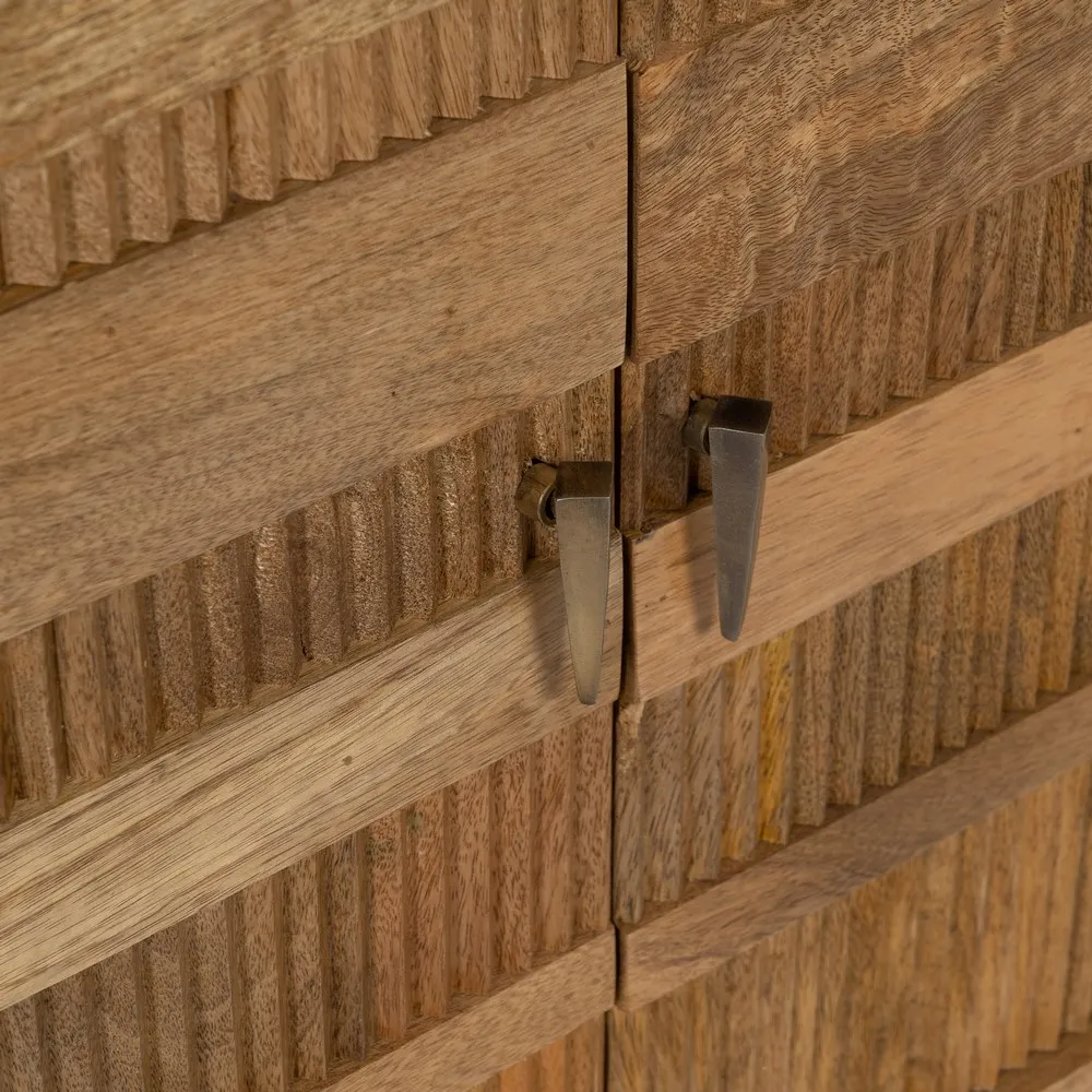 Comodă din lemn de mango, sculptată meticulos, ce adaugă lux și originalitate, evidențiind frumusețea naturală a lemnului.
