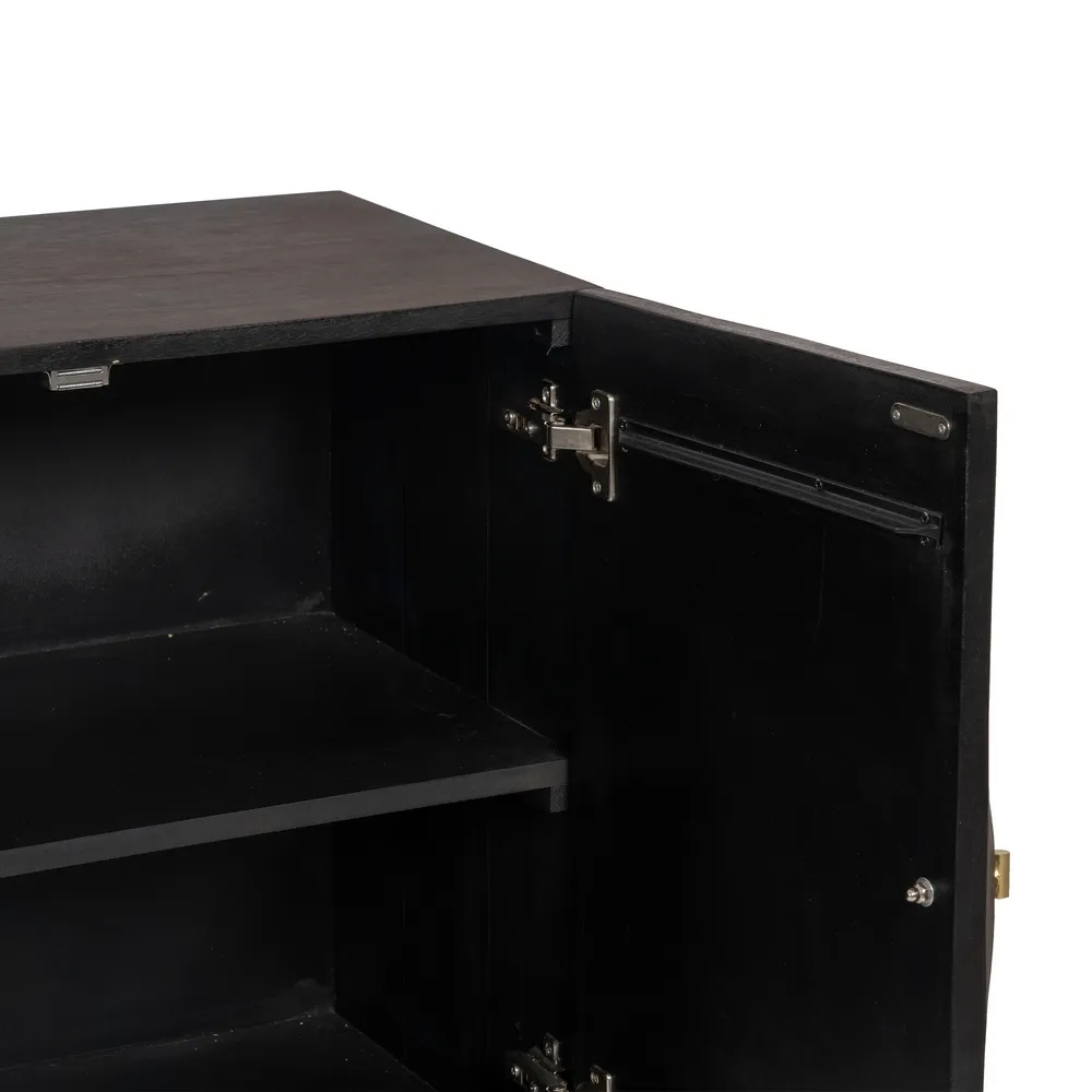 Comoda din lemn de mango maro cu finisaj unic realizat manual. Cu usile frumos sculptate, este o piesa de mobilier cu design creativ distinct, perfecta pentru a adauga un element de originalitate in livingul sau pe holul dvs. Lemnul de mango ofera un efect de raritate si naturalete, iar detaliile sculptate adauga acel efect senzational de lucru pretios executat manual. Aceasta comoda poate fi o piesa centrala in decorul spatiului dvs, completand o amenajare autentica.