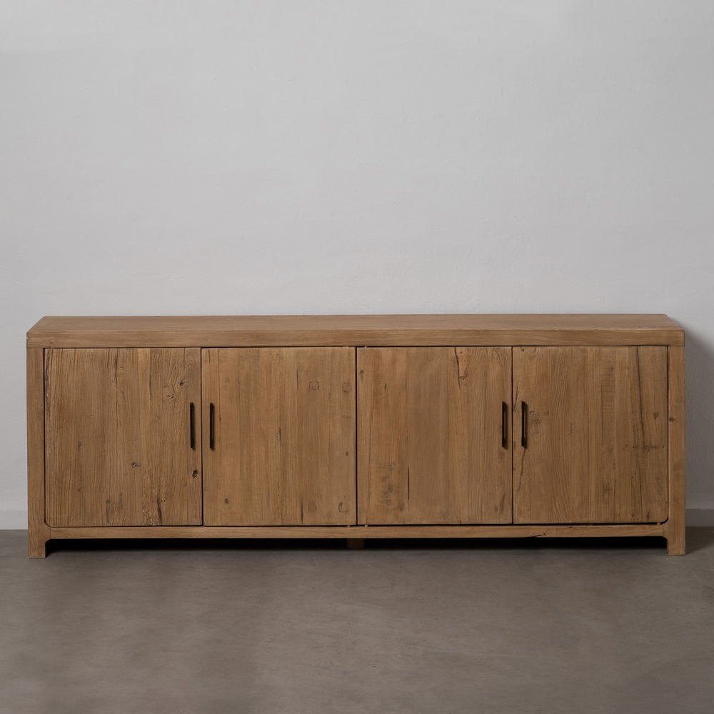 Comodă din lemn de ulm, cu dimensiunile de 229 cm lungime, 44 cm lățime și 81 cm înălțime, perfectă pentru interioare rustice sau moderne. Ușile generoase, de 53,5x64 cm, oferă acces la compartimentele spațioase, dotate cu rafturi interioare ajustabile la înălțimi de 30 și 33 cm, ideale pentru depozitarea obiectelor de diferite dimensiuni. Picioarele de 6,5 cm adaugă un aer discret și oferă stabilitate. Nuanța naturală a lemnului de ulm contribuie la un decor cald și primitor. Comode robuste și funcționale disponibile la CreativDeco.