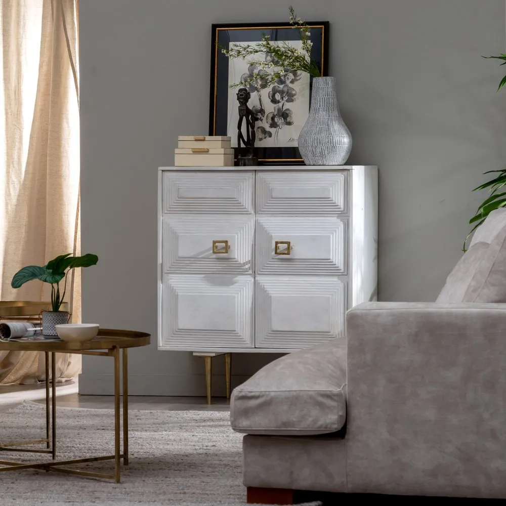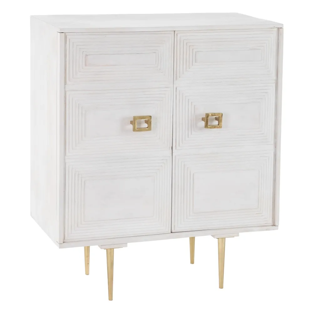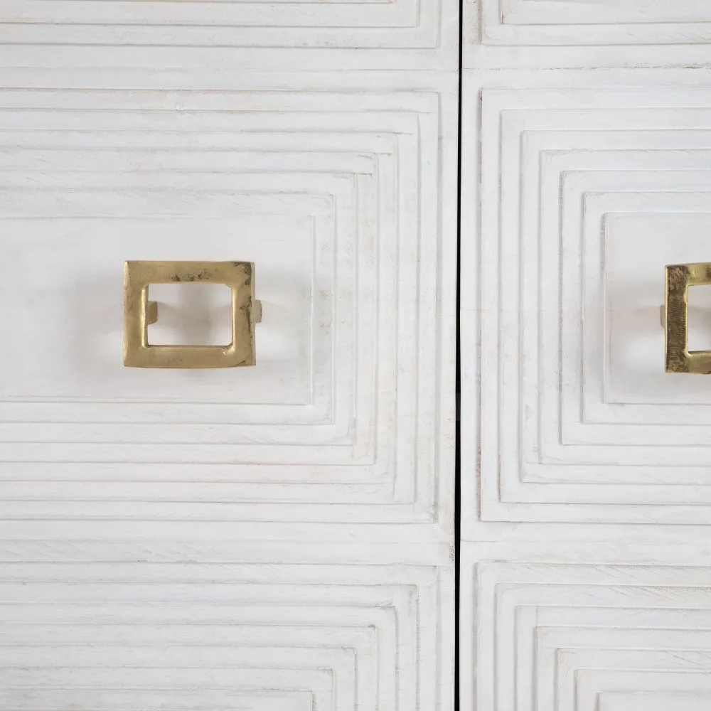 Denzzo Comoda Unique Alb Auriu, Lemn Mango Metal, 89 X 43 X 105 CM