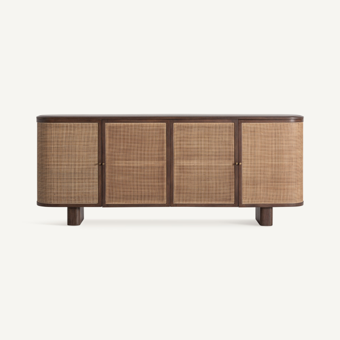 Bufet din lemn de mango maro cu uși din ratan și colțuri rotunjite stil natural Gondorf 210 x 40 x 85 cm
