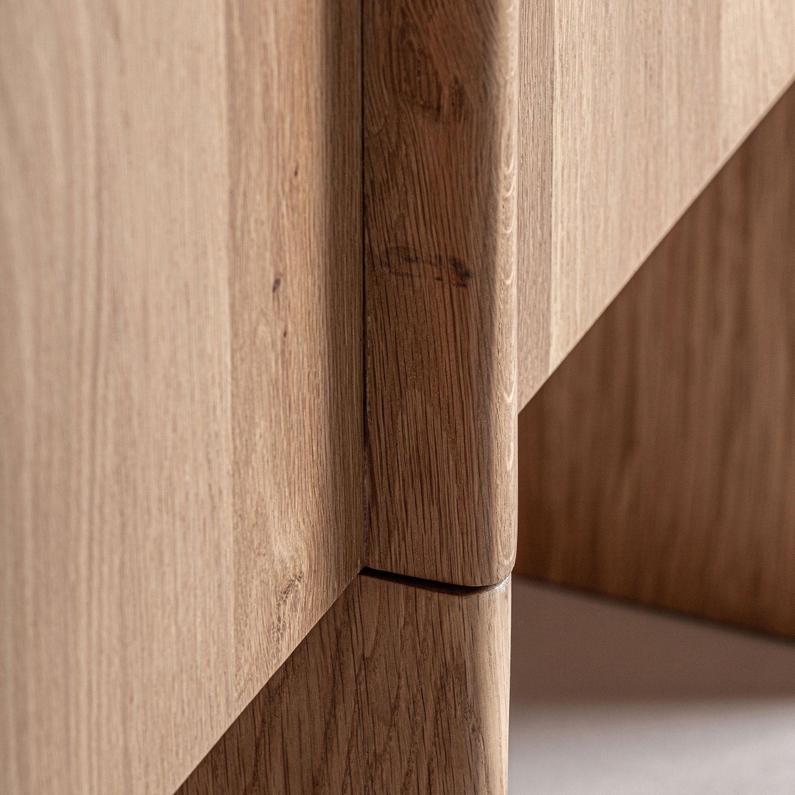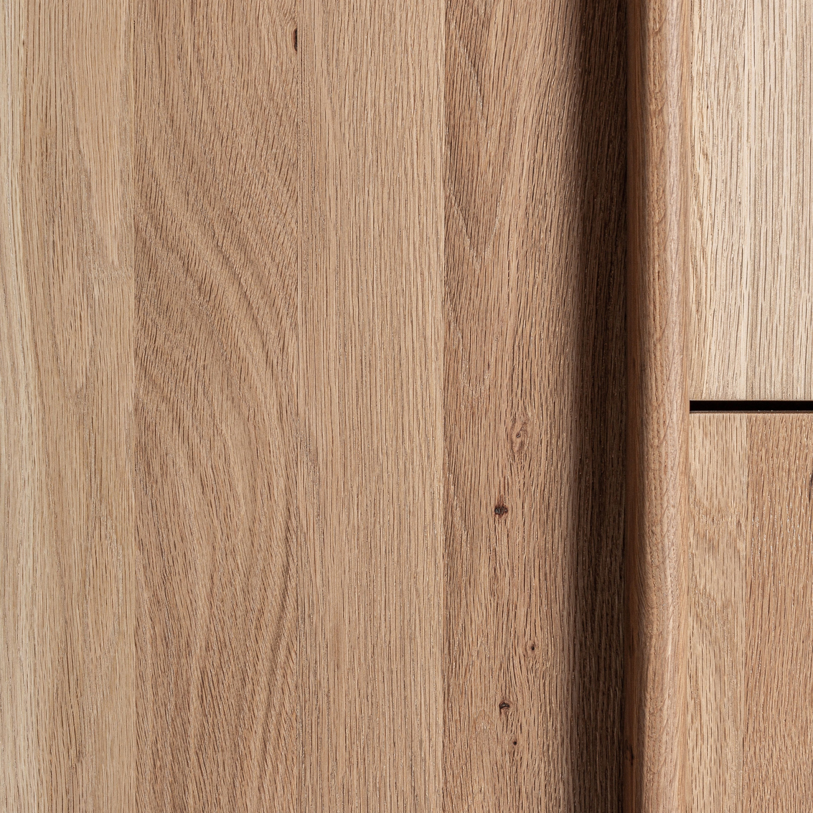 Nu este doar o piesă de depozitare, ci un element care aduce echilibru vizual și liniște într-un spațiu bine organizat. Formele rotunjite și ritmul vertical al fronturilor creează o prezență calmă, iar contrastul dintre lemnul de stejar în ton deschis și marmura neagră adaugă profunzime fără să încarce.
