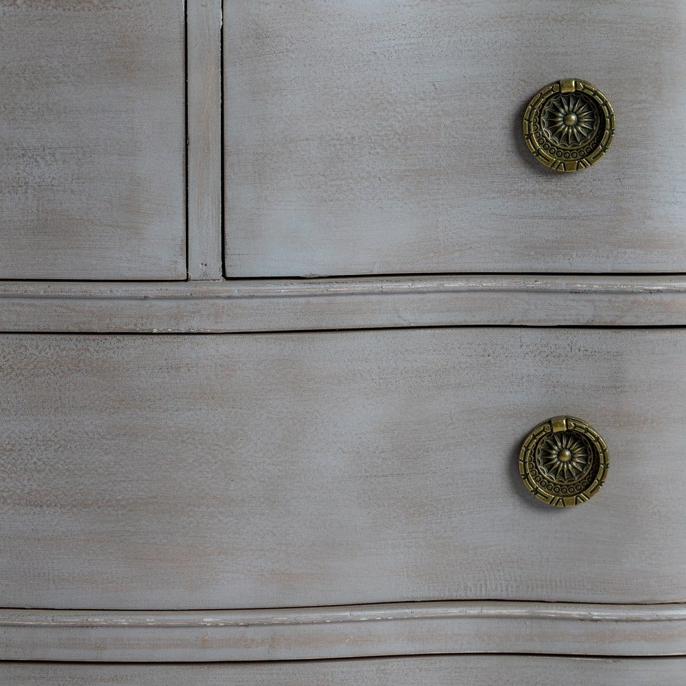 Detaliile delicate și picioarele sculptate conferă comodei un caracter elegant, iar structura solidă asigură durabilitatea pe termen lung. Această comodă este perfectă pentru a adăuga personalitate și funcționalitate în decorul casei tale, devenind rapid un punct central al camerei.