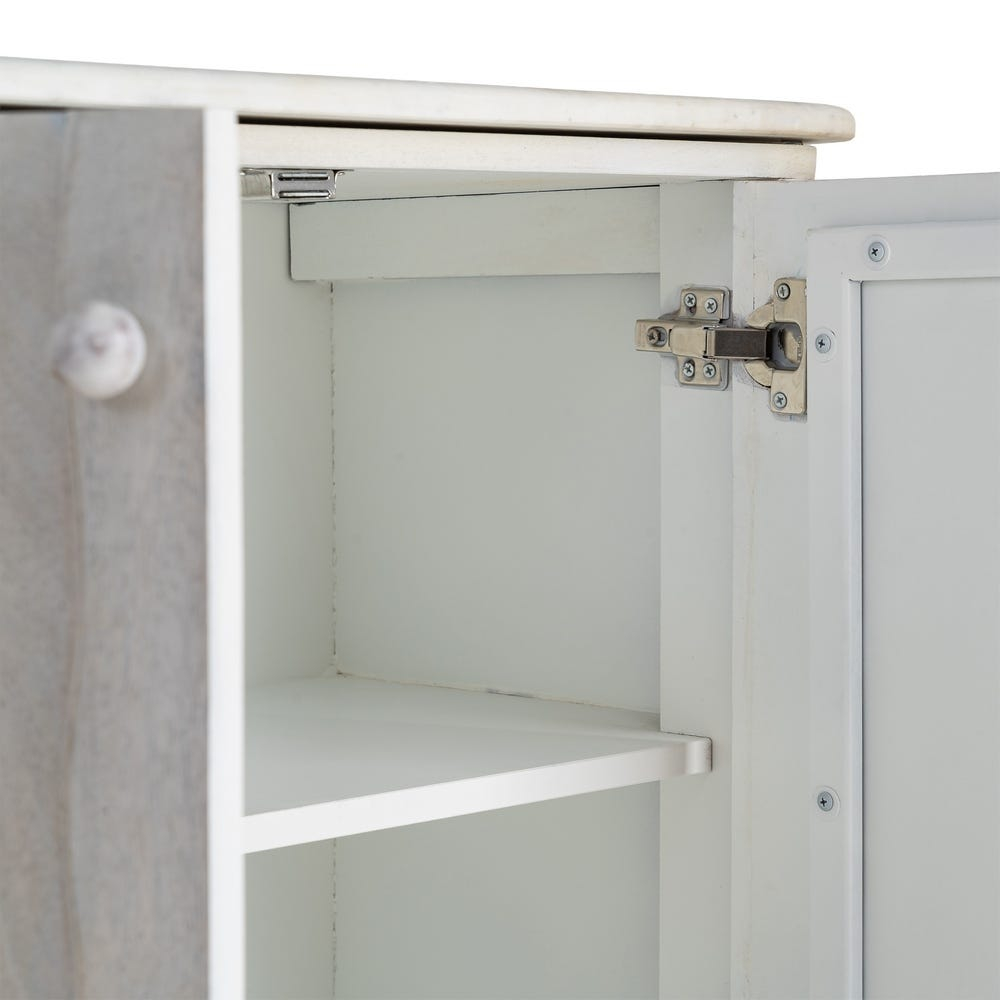 Este un bufet de depozitare realizat din lemn de mango, cu blat din marmură naturală.