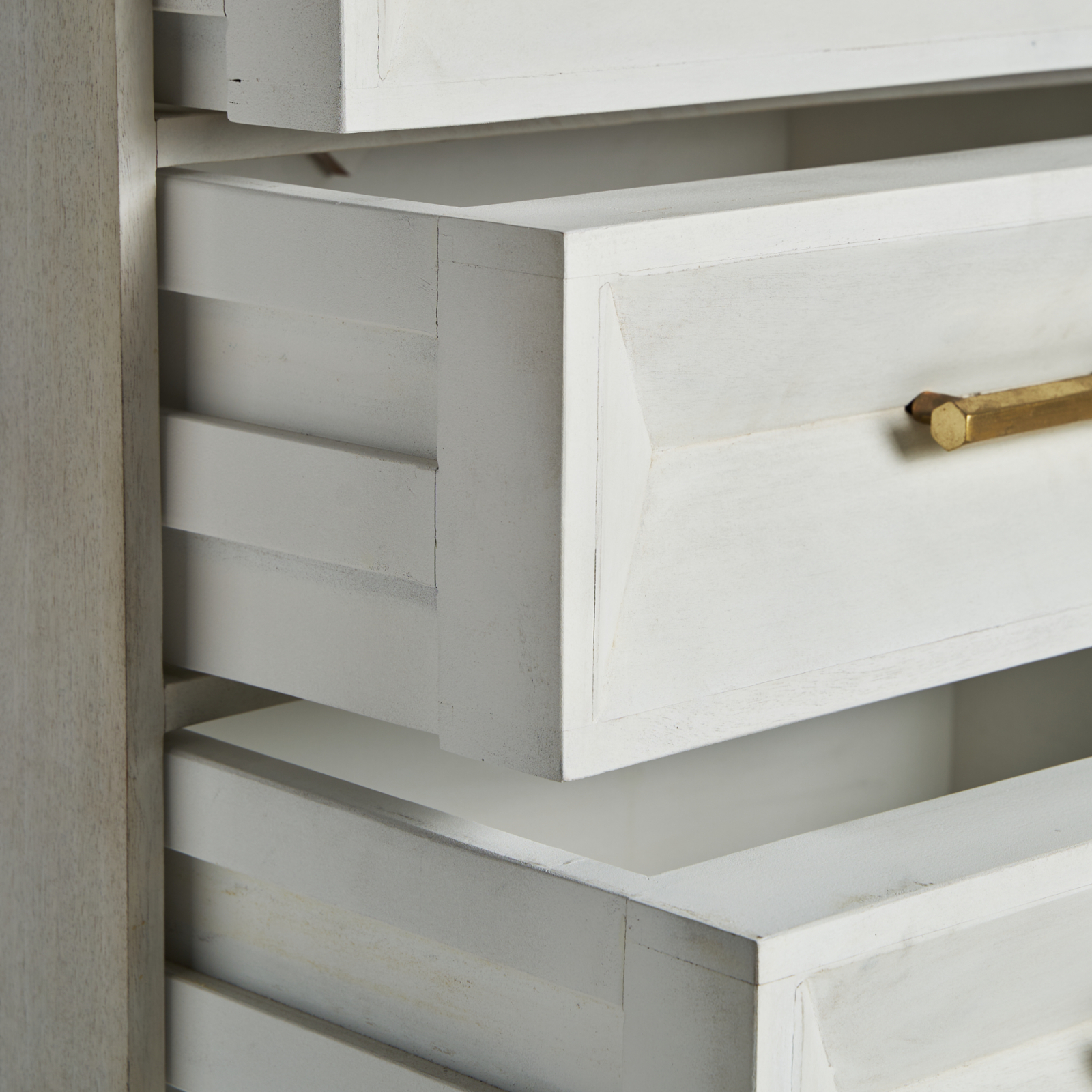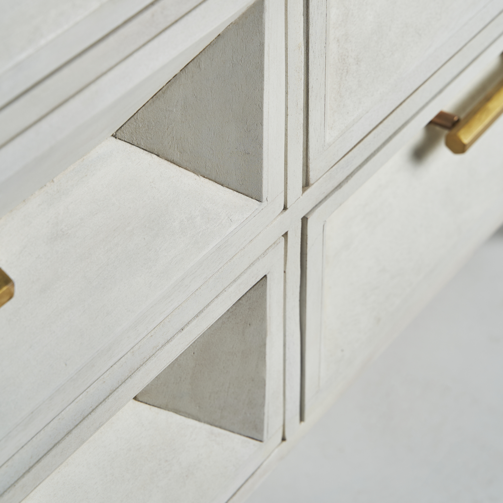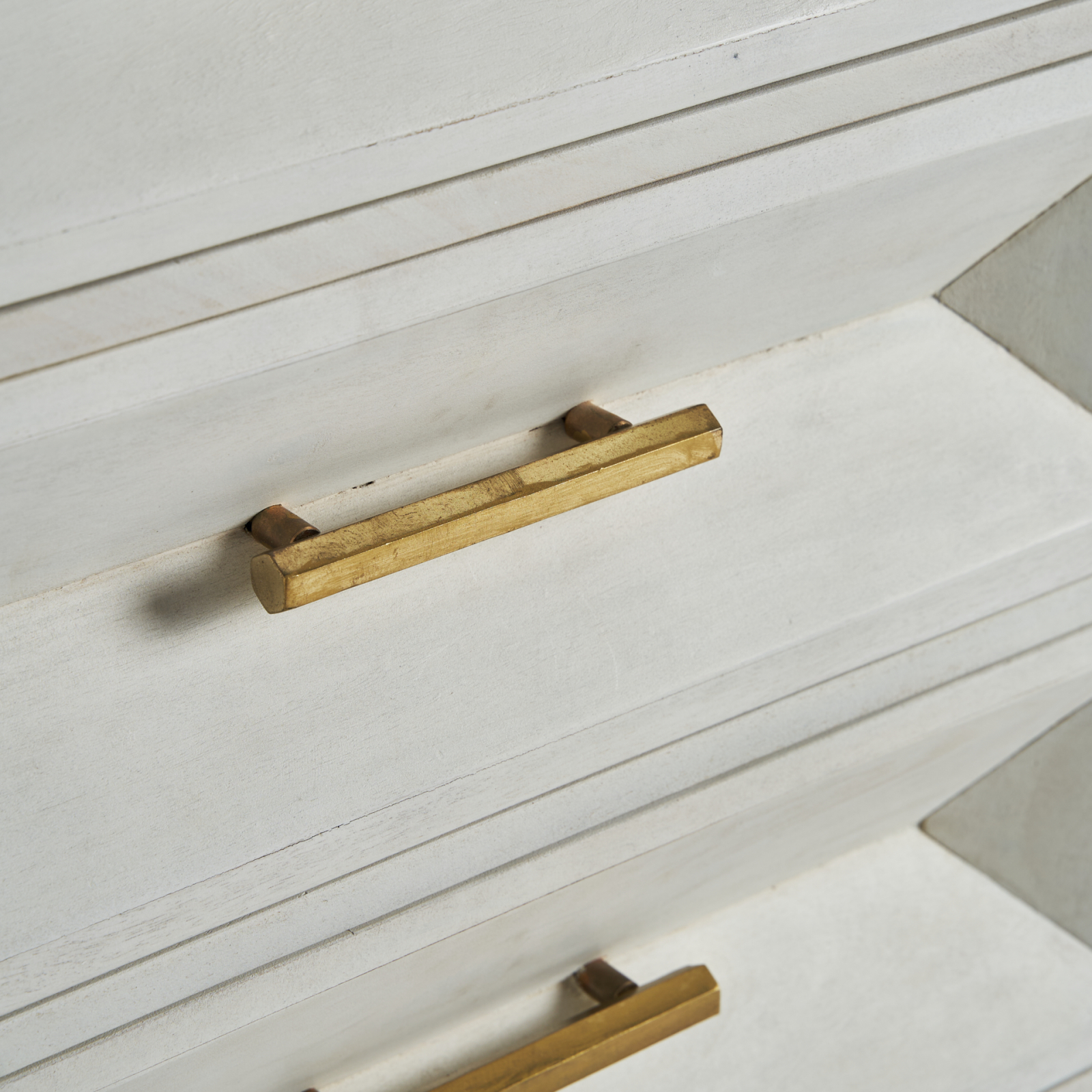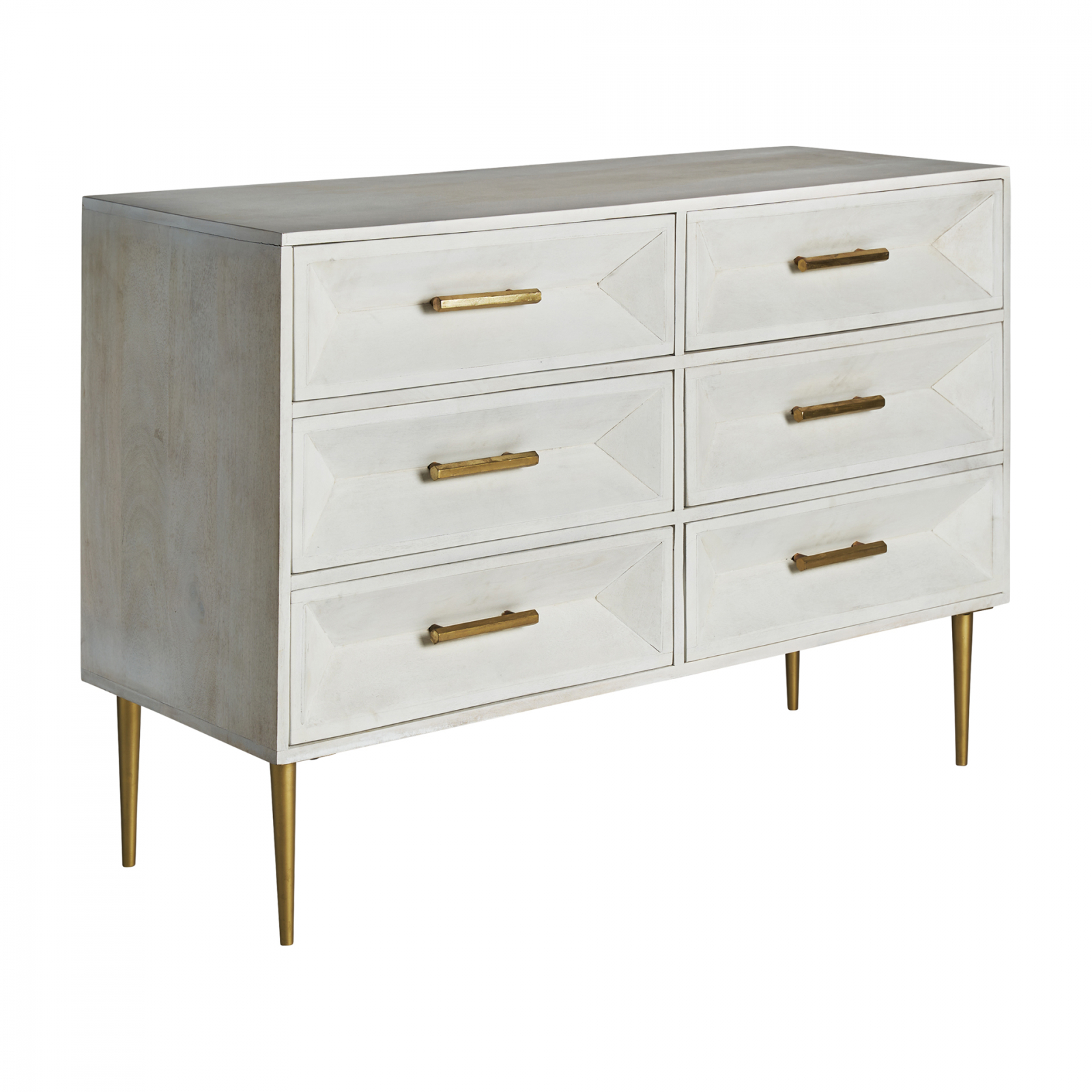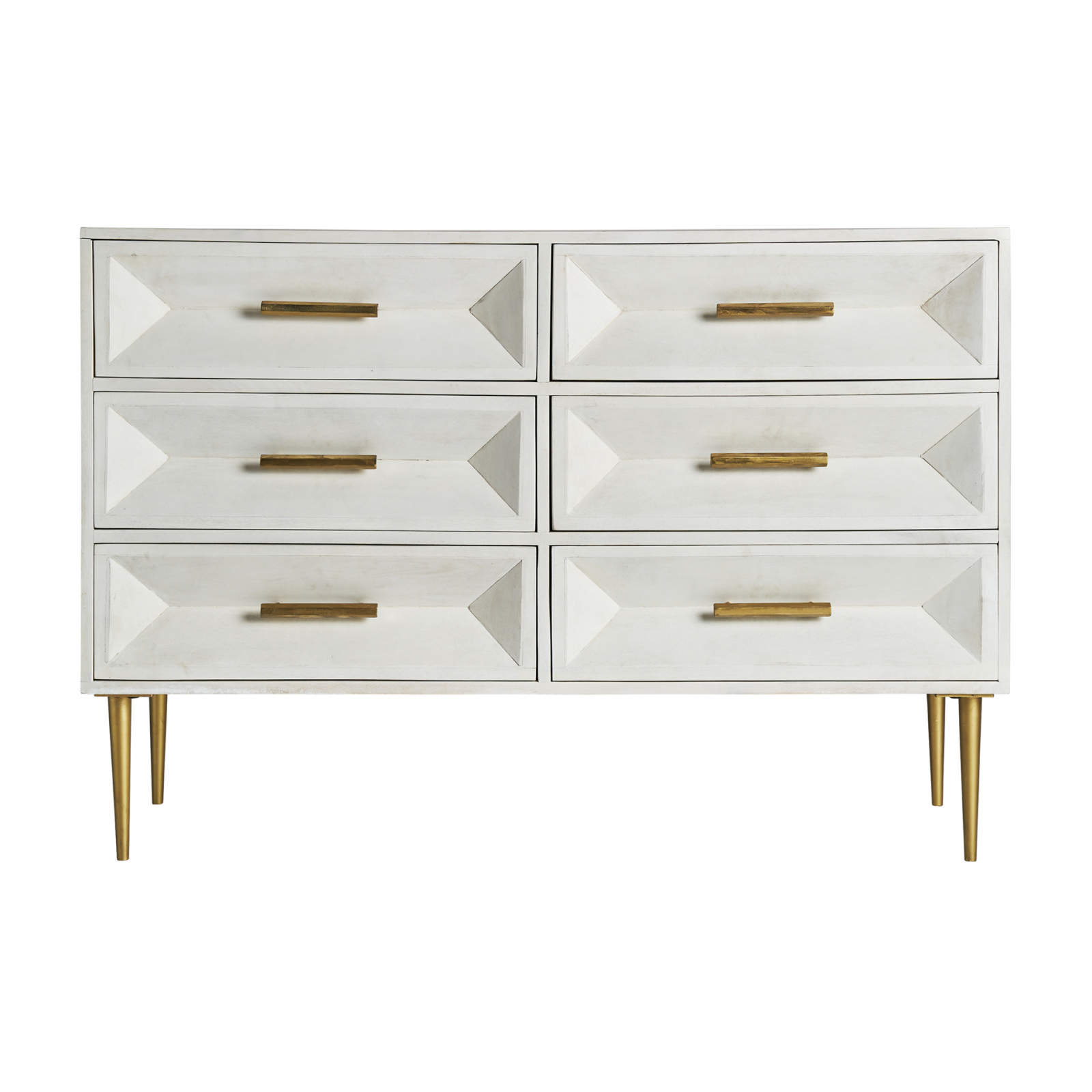 Comoda Art Deco din lemn de mango cu finisaj crem si auriu. Comode elegante cu aspect rafinat, ideale pentru interior sofisticat.