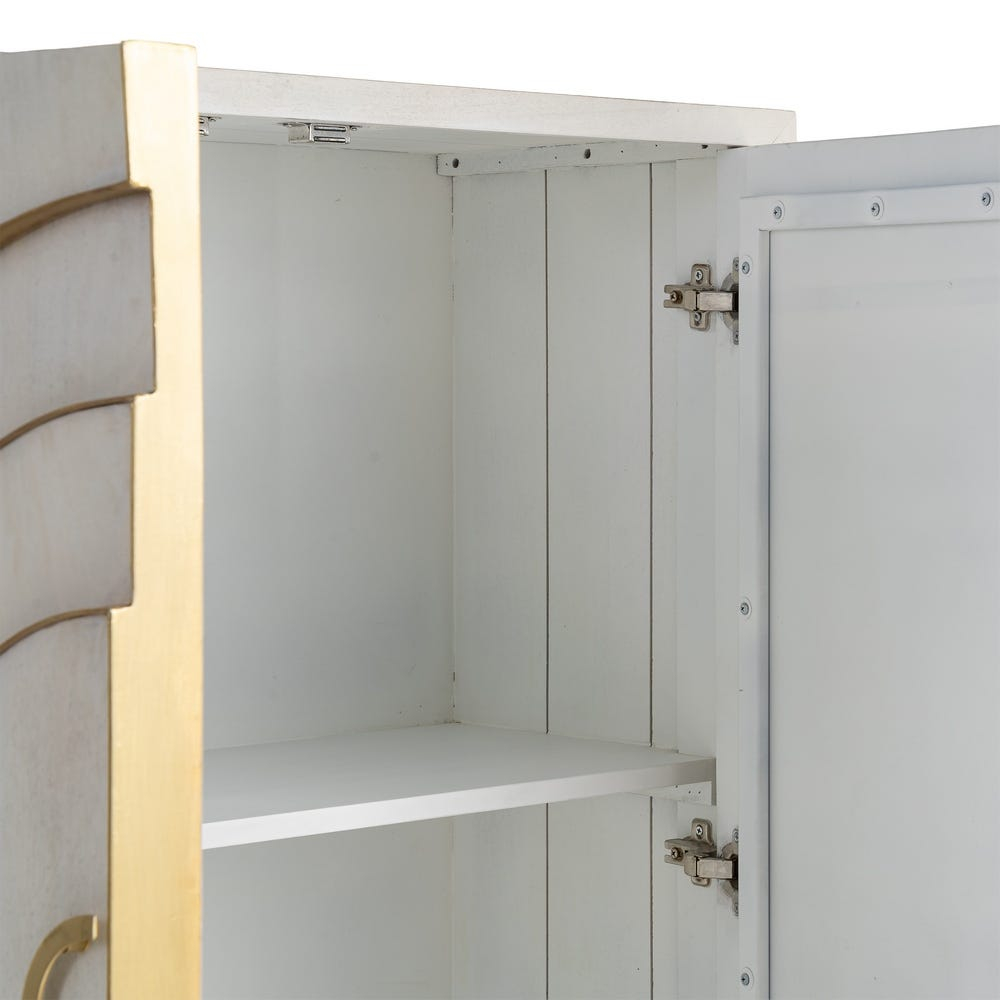 Această comodă tip cabinet atrage imediat atenția prin fronturile sculptate cu motive circulare concentrice, un detaliu decorativ care aduce ritm, profunzime și un accent elegant în orice spațiu. Realizată integral din lemn de mango, piesa combină proporțiile compacte cu un design expresiv, devenind atât un element funcțional, cât și unul decorativ.