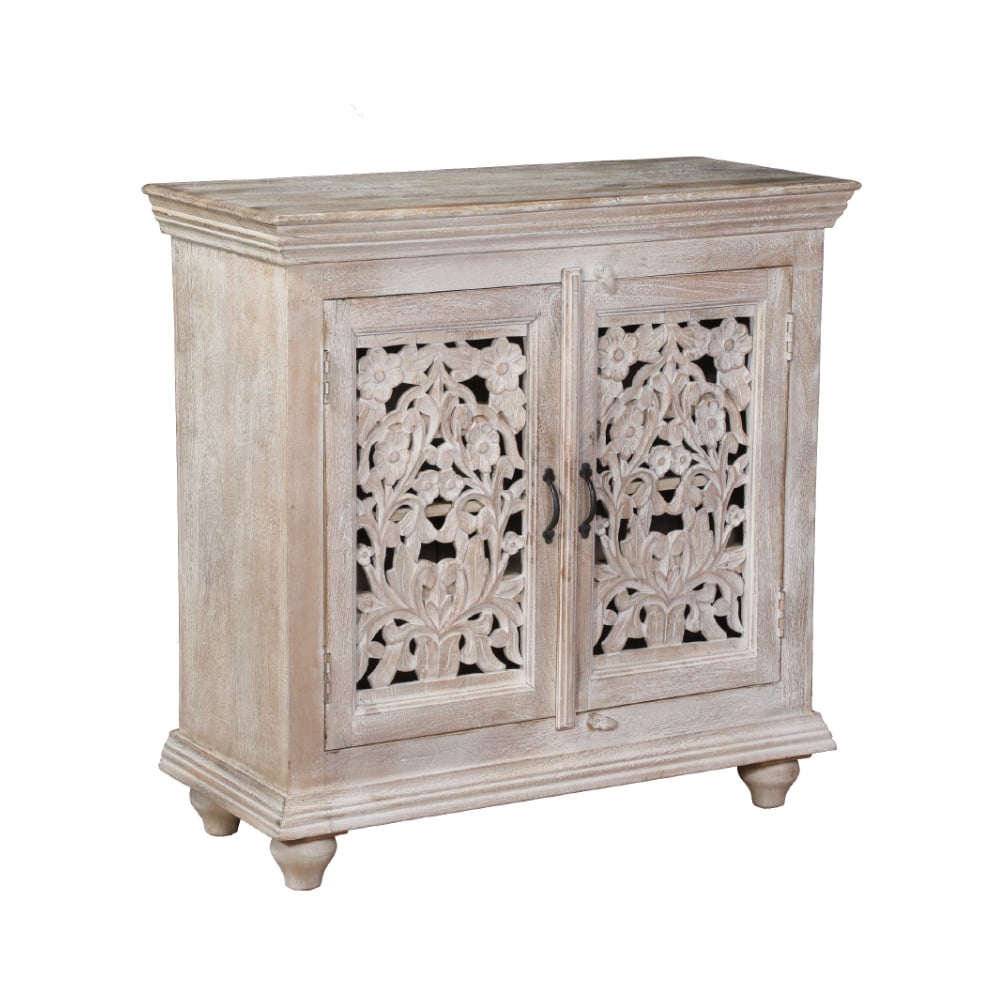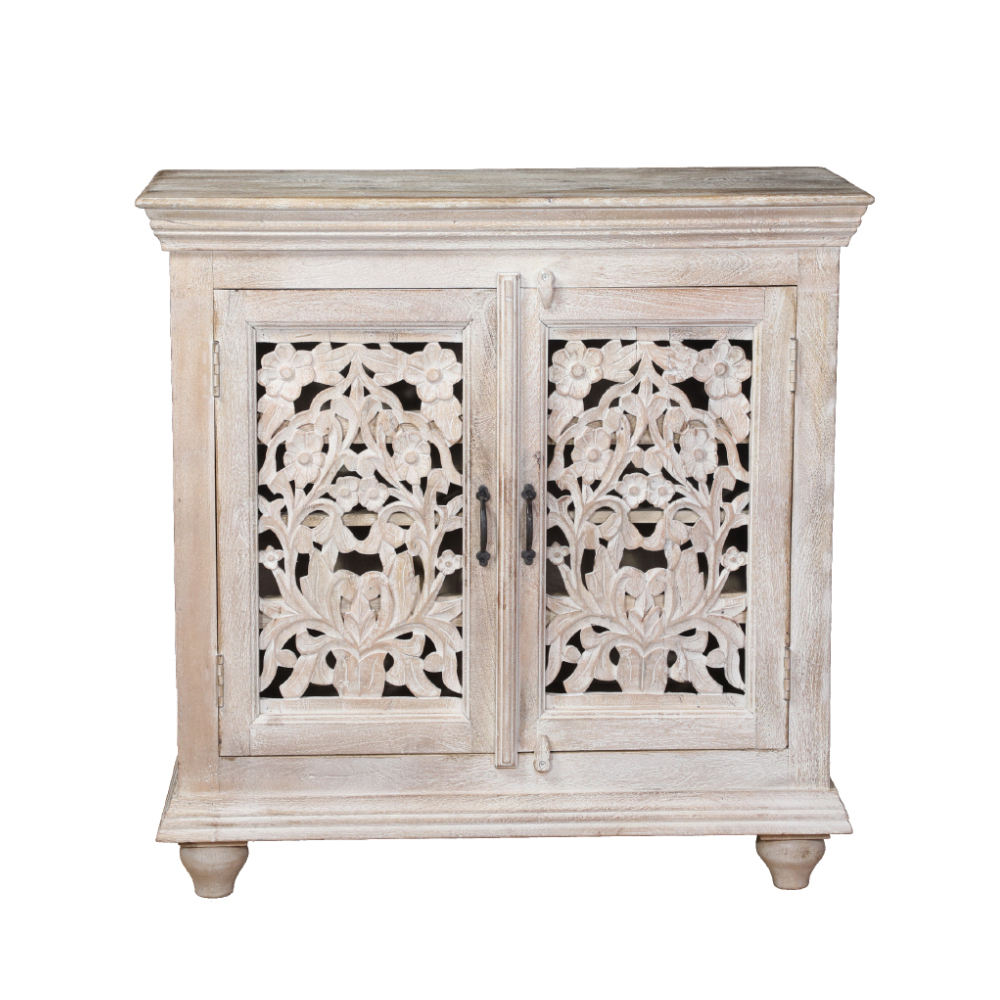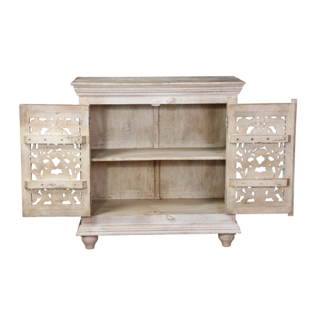 Dispune de două dulapuri cu fronturi în relief elaborate, evidențiind detaliile sale unice lucrate manual și estetica superioară. Comoda Corfu combină funcționalitatea cu un aspect distinctiv, oferind spațiu de depozitare și o notă decorativă intemporală pentru casa ta.