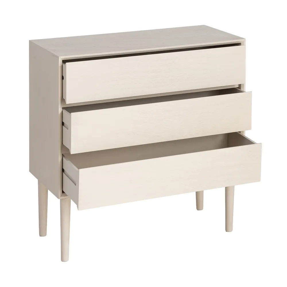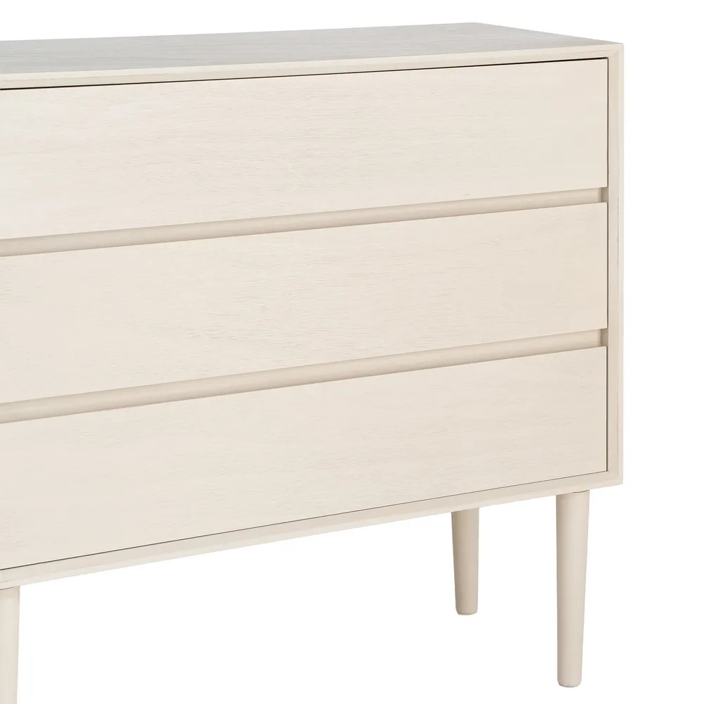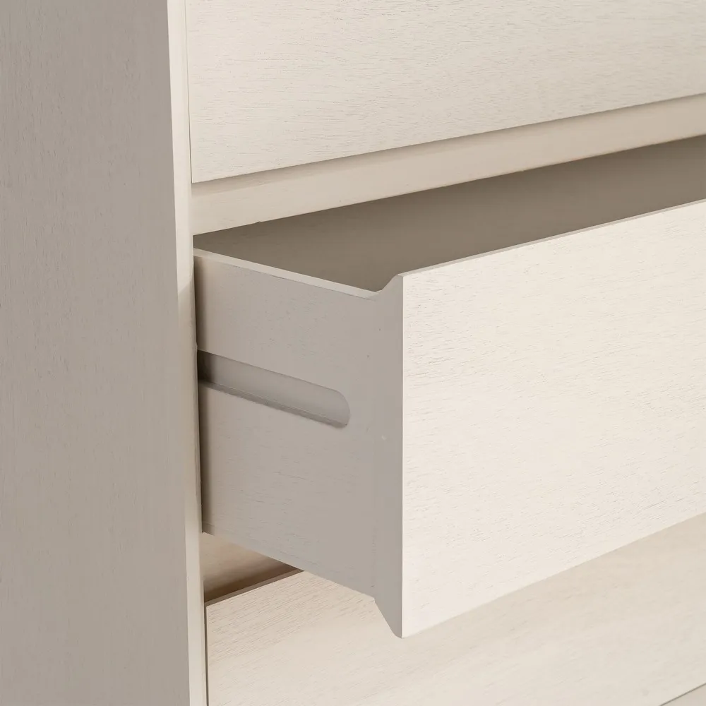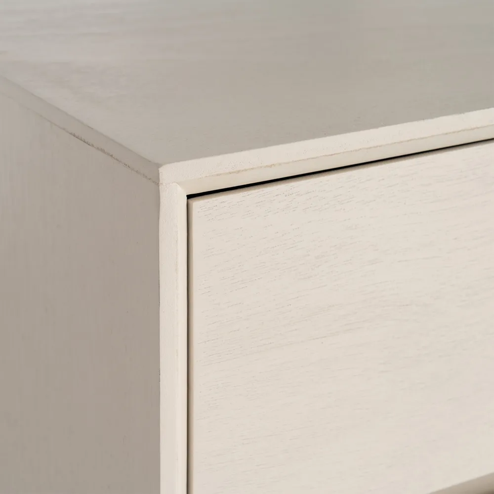 Această comodă este concepută pentru amenajări de dormitor care urmăresc un aspect curat și bine organizat. Volumul echilibrat, finisajul crem și liniile drepte definesc o piesă cu design minimalist, ușor de integrat în interioare contemporane, unde funcționalitatea este la fel de importantă ca estetica.