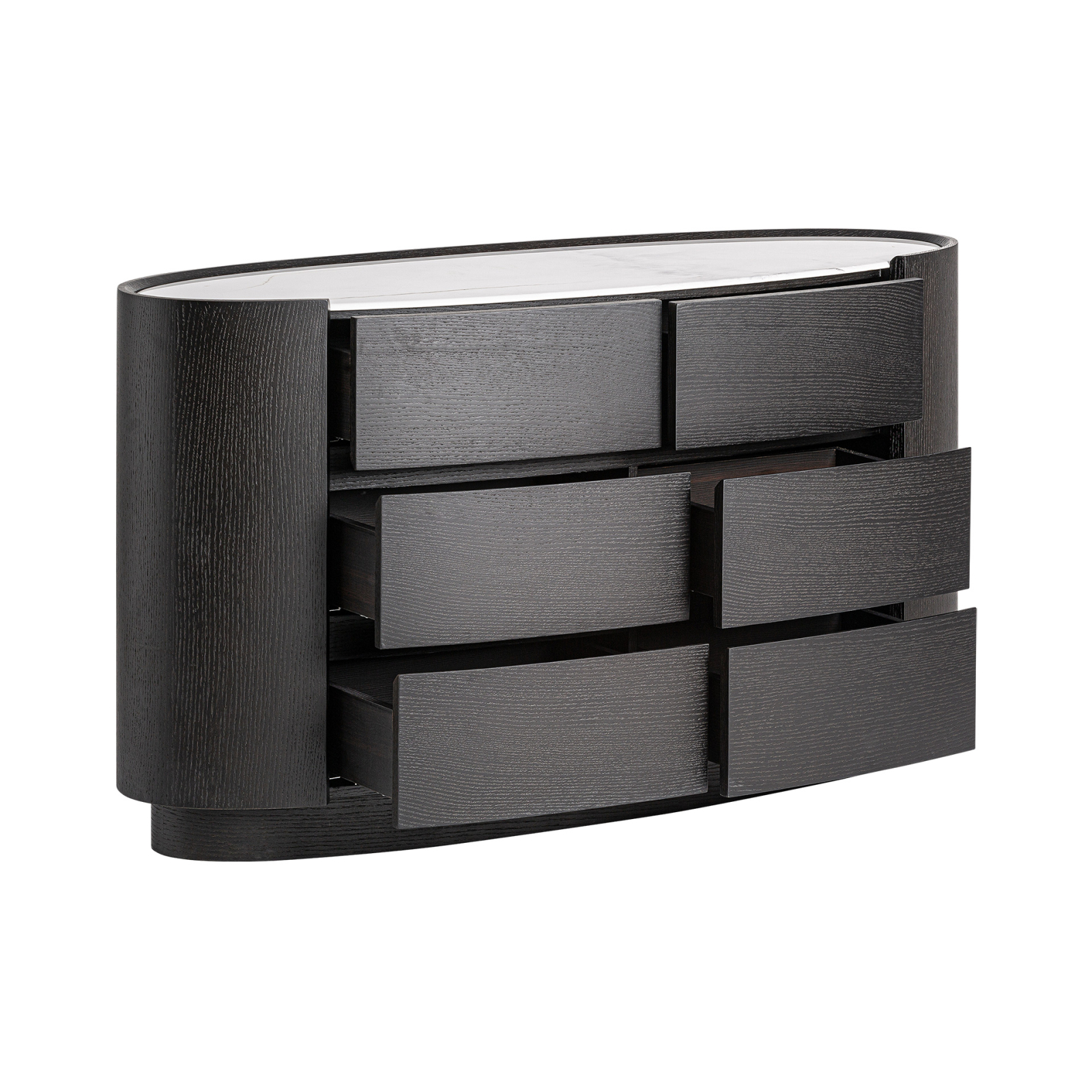 Comodă modernă din lemn negru cu blat din piatră sinterizată albă și 6 sertare Isola 140 x 45 x 75 cm