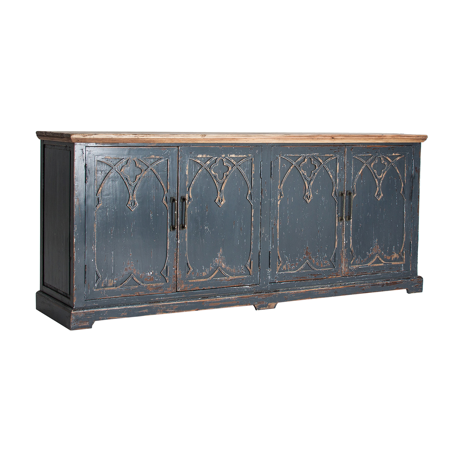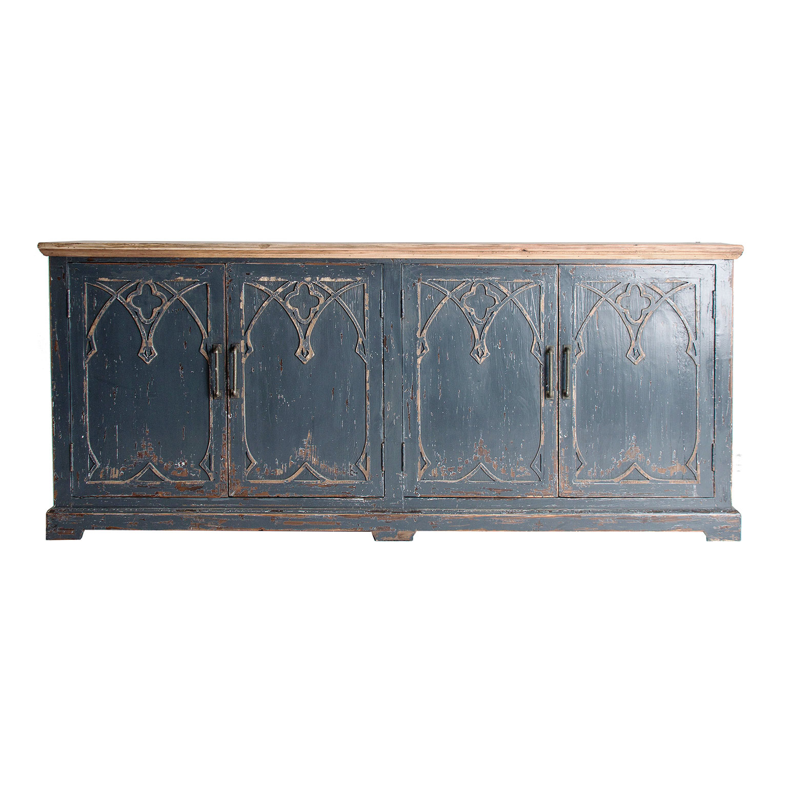 Vical Bufet din lemn de ulm albastru si natural in stil provensal Suzara 198x50x85 cm