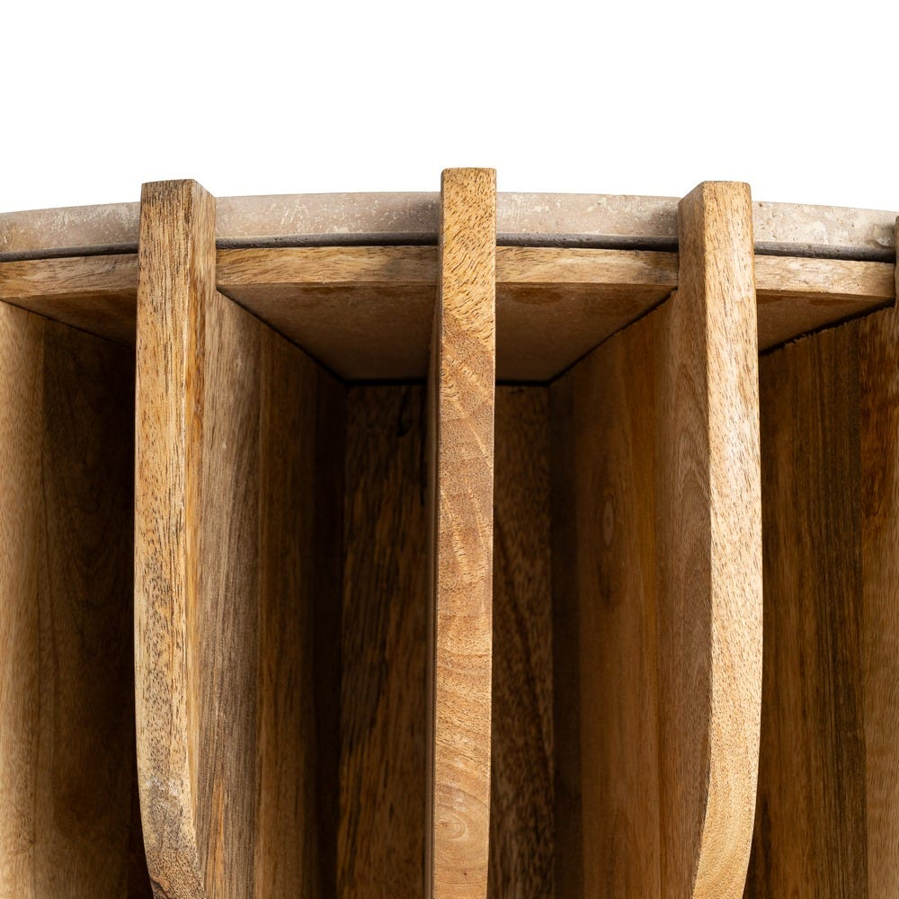 Consola cu baza canelata din lemn de mango este o piesa de accent pentru hol si living. Liniile verticale ale bazei creeaza profunzime si un aspect elegant, usor de remarcat. Blatul din marmura naturala adauga un contrast rafinat si pastreaza fiecare piesa unica.