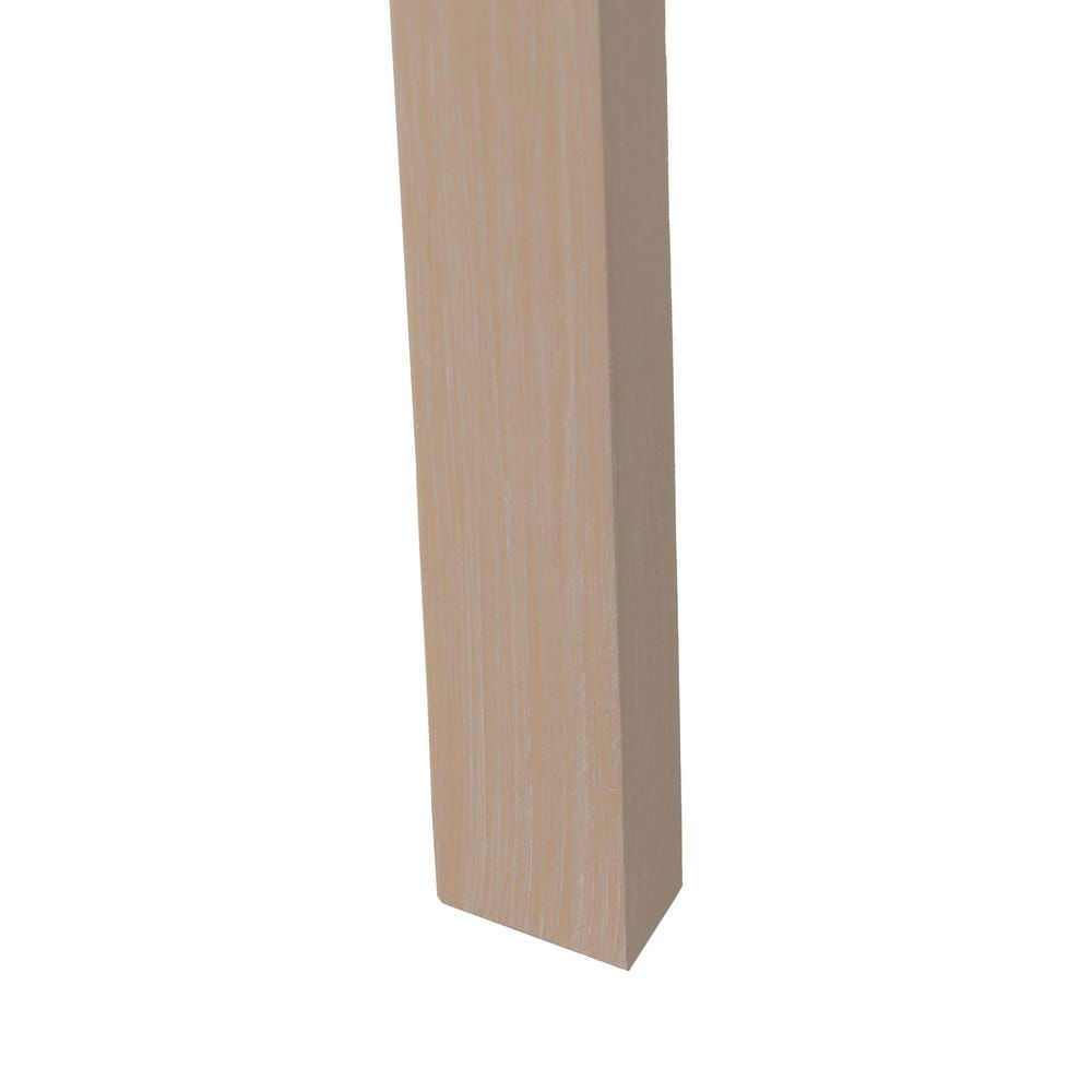 Forma trapezoidală a picioarelor adaugă stabilitate și dinamism vizual, în timp ce raftul inferior tip grilaj este ideal pentru obiecte ușoare, papuci sau coșuri textile. Cromatica neutră o face ușor de integrat în holuri, băi, dormitoare sau spații comerciale cu estetică soft-naturală.