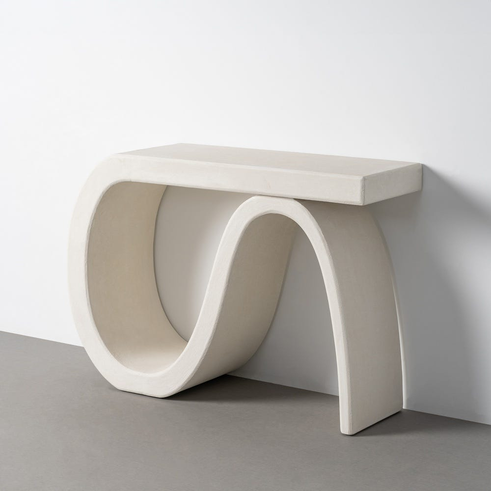 Nu este doar o consolă, ci o piesă care atrage privirea prin formă și liniștește spațiul prin culoare. Albul mat și liniile curbe creează o prezență calmă, aproape sculpturală, care schimbă modul în care este perceput întregul decor.