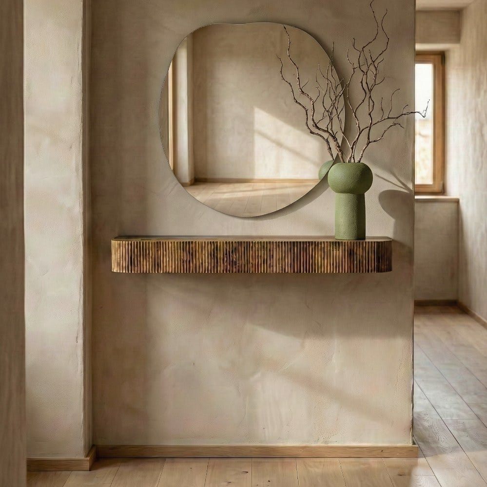 Consola poate fi utilizată ca suport pentru obiecte decorative, chei, vaze sau accesorii de mici dimensiuni, fiind în același timp o piesă de accent care aduce căldură și caracter peretelui.