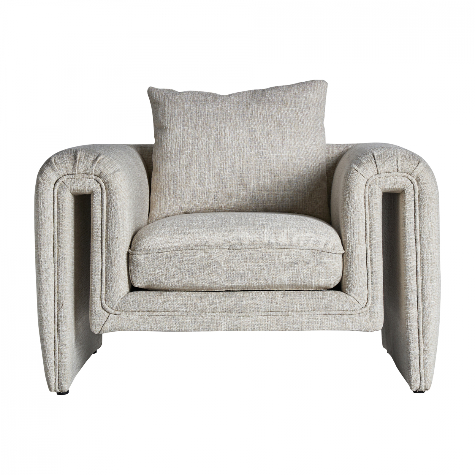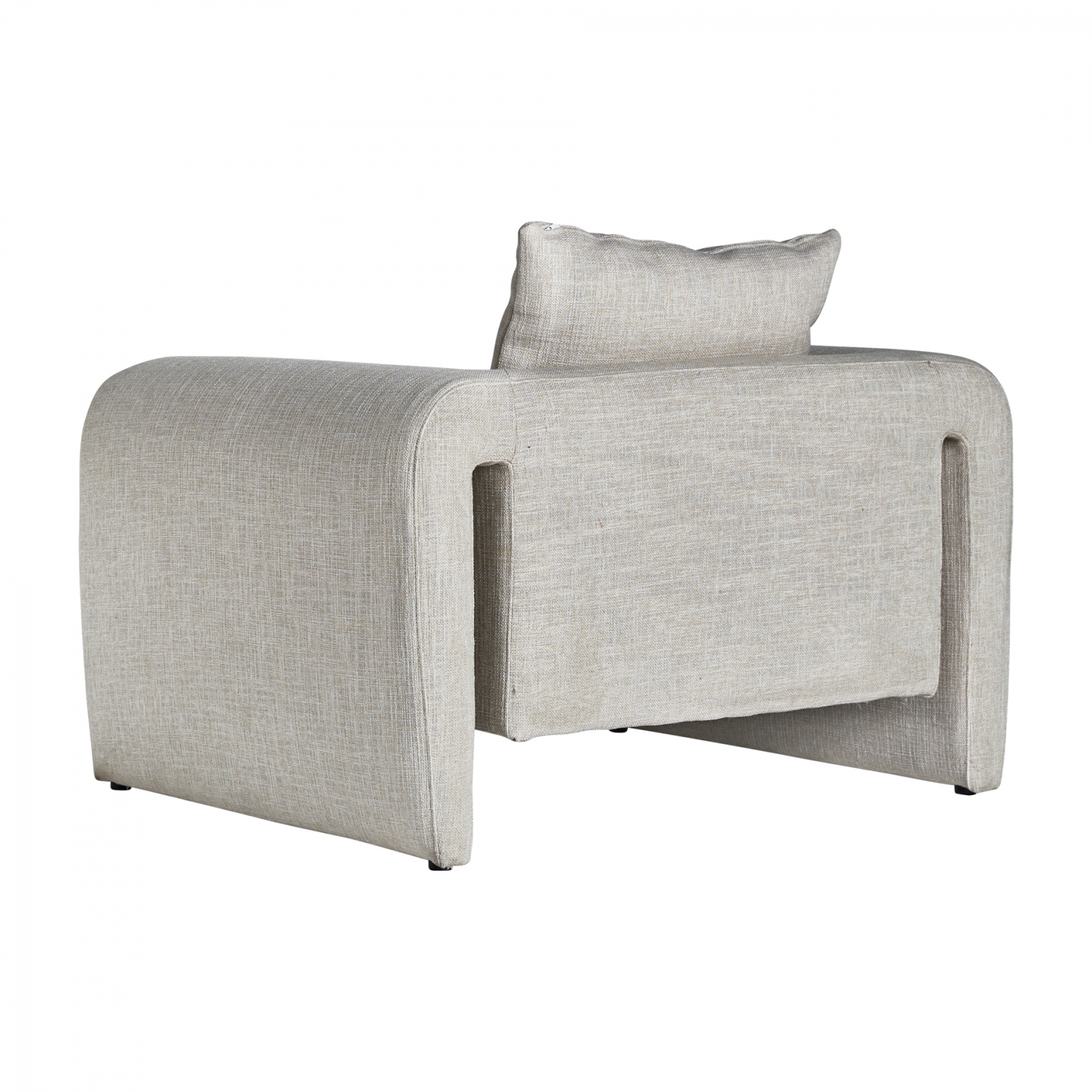 Fotoliu contemporan din lemn de pin cu finisaj gri și husă detașabilă. Design curat și organic, ideal pentru un living sau dormitor modern și confortabil.