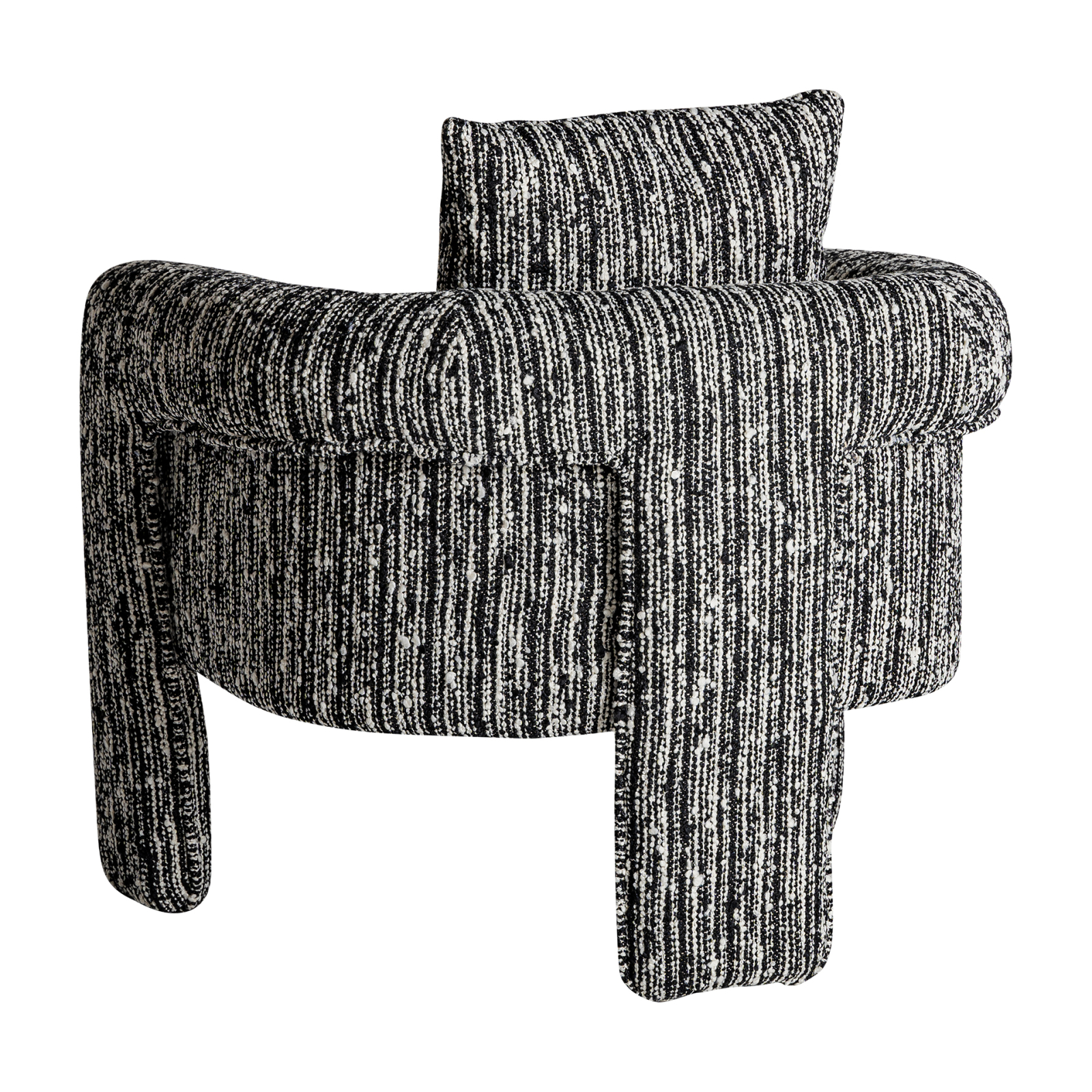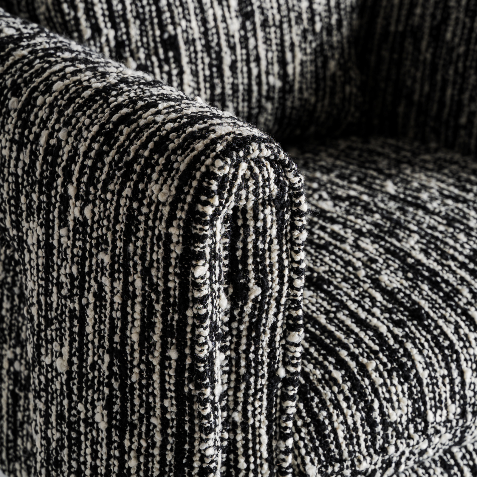 Fotoliul Kostov este o piesă care atrage prin contrast și textură, fără să devină încărcată. Tapiseria neagră cu aspect texturat oferă profunzime vizuală, iar formele rotunjite și compacte creează un echilibru între prezență și confort.