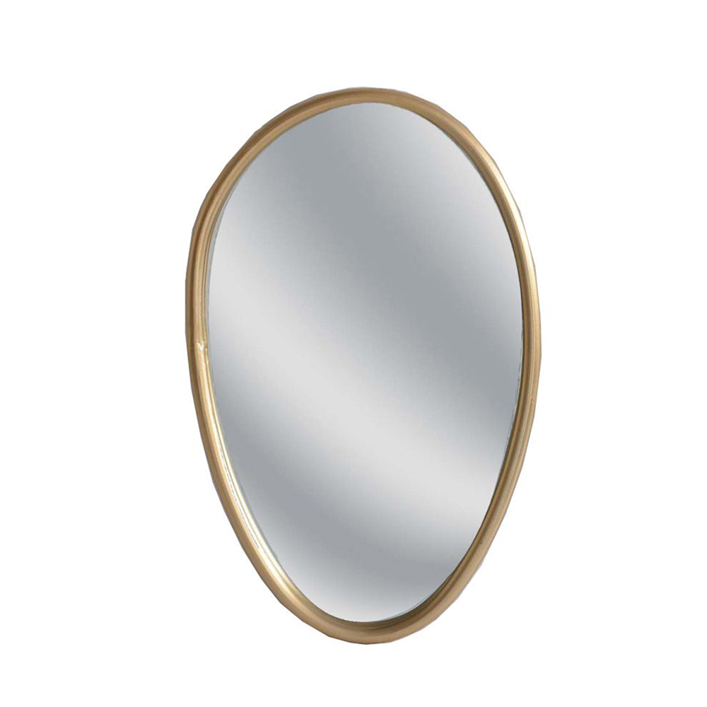 Formele neregulate și marginile ușor curbate oferă un accent artistic și relaxat, în contrast cu geometria clasică a oglinzilor standard. Finisajul auriu mat adaugă un strop de căldură fără a fi strident, integrându-se armonios în decoruri neutre, naturale sau elegante.