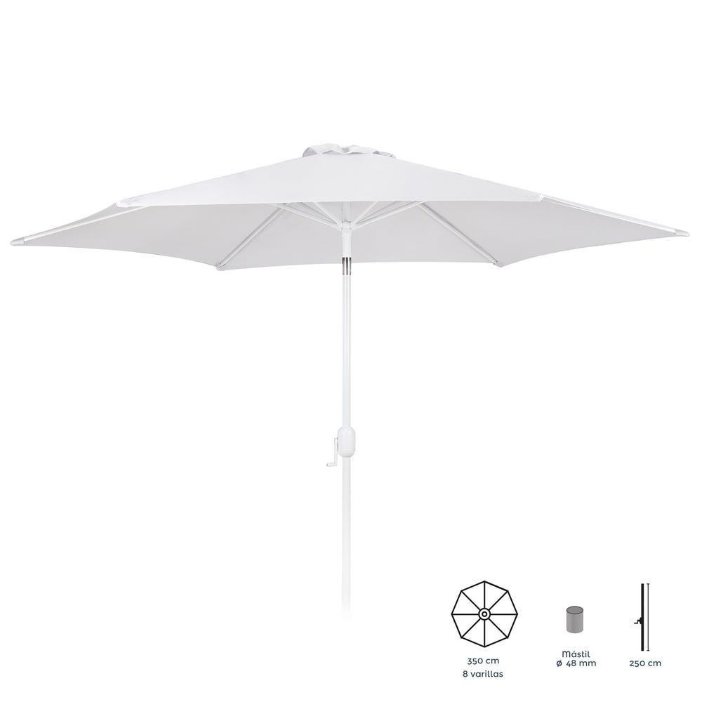 Umbrela terasa centrala Alba aluminiu alb cu manivela 8 spite si panza poliester 180g ideala pentru gradina 350 cm