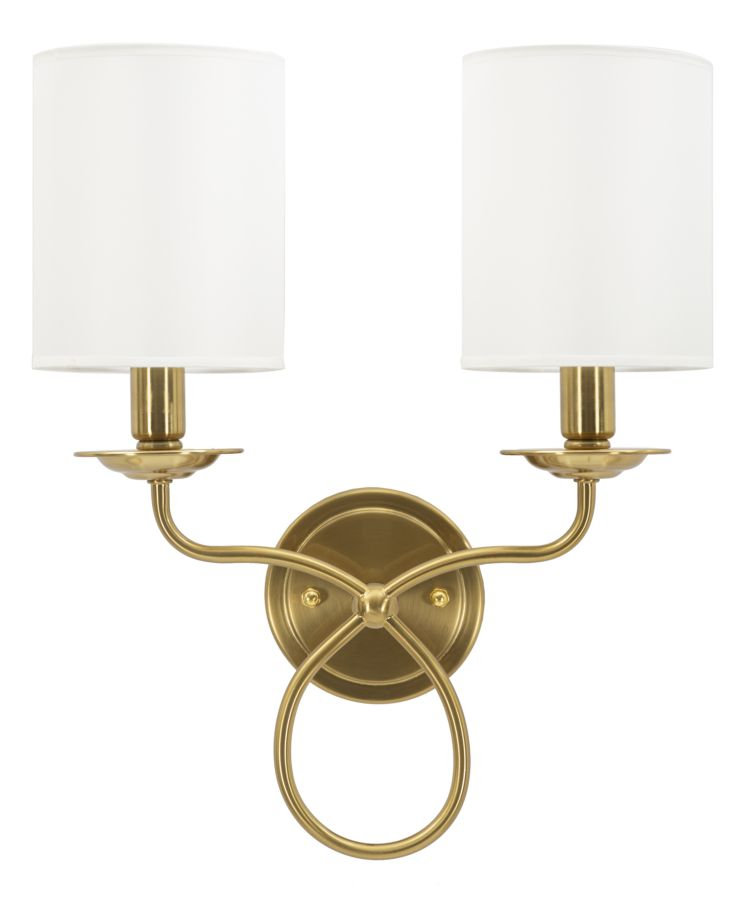 Aplica de perete Zagabria este o piesă decorativă și funcțională, realizată din fier finisat în nuanță aurie și completată de două abajururi textile albe, ce aduc un plus de eleganță oricărui spațiu. Designul său rafinat se integrează perfect în decoruri clasice, glam sau moderne.