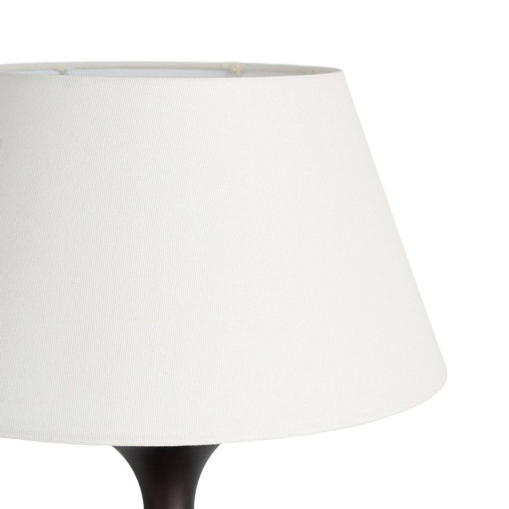 Lampă de masă din lemn maro închis și metal cu bază sculpturală și abajur alb din stofă 34 x 34 x 50 cm