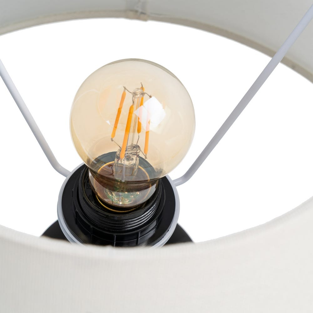 Abajurul alb din stofă filtrează lumina într-un mod plăcut, creând o atmosferă caldă și relaxantă. Baza din lemn cu formă sculpturală adaugă caracter și profunzime, transformând lampa într-un accent decorativ echilibrat.