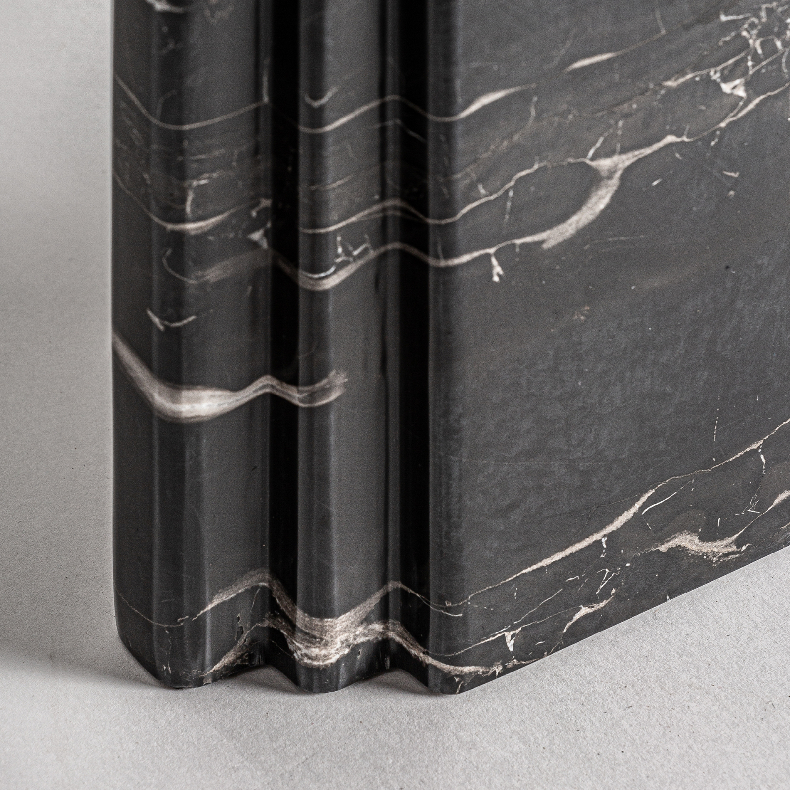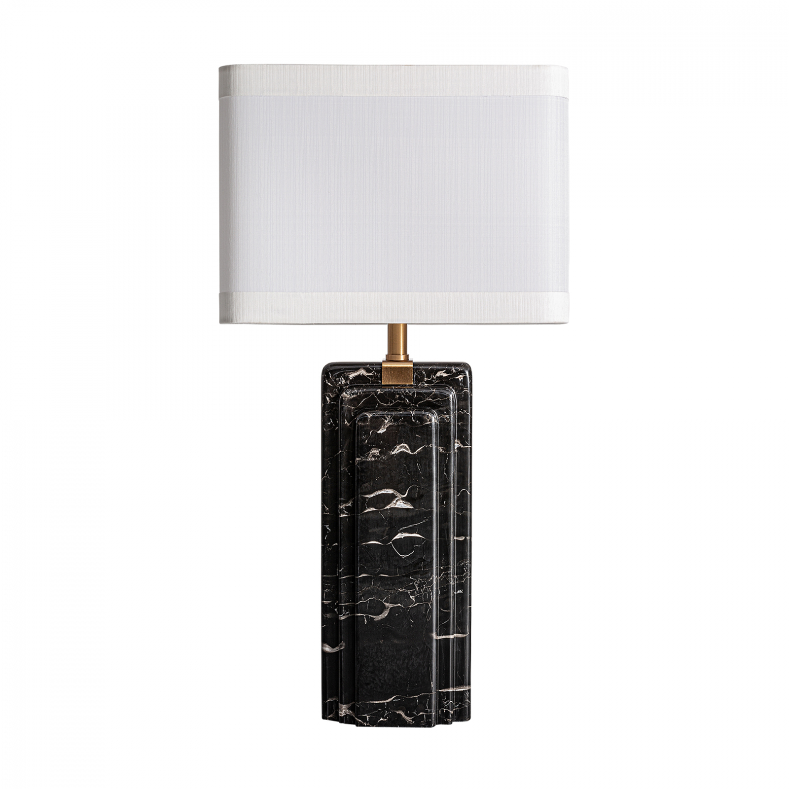 Lampă de masă Art Deco din marmură albă și neagră, design geometric sofisticat. Creează un contrast dramatic și elegant în interior. Iluminat luxos pentru spații moderne.