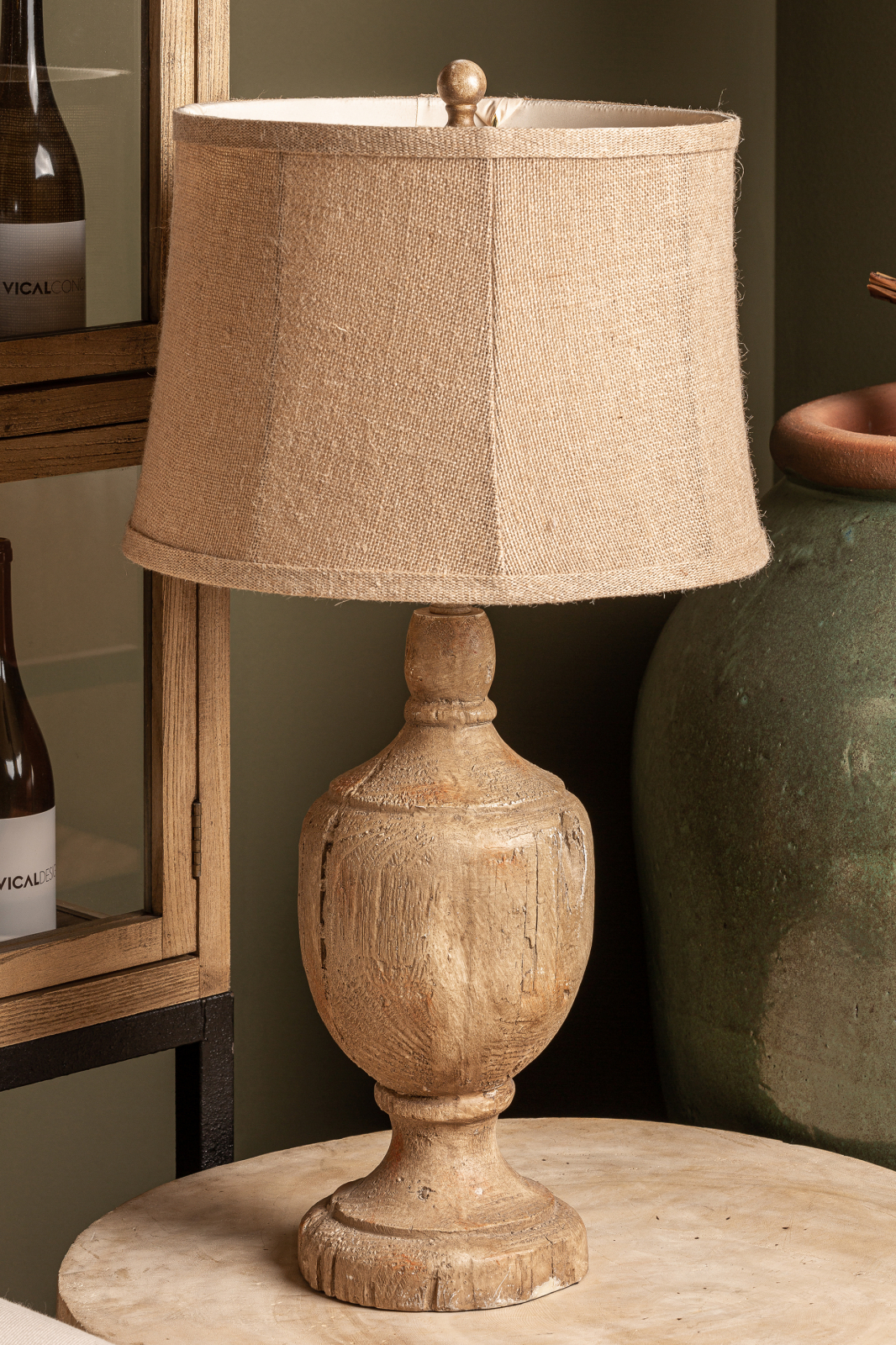 Lampă de masă provensală din rășină maro și iută. Design rustic și elegant pentru atmosferă caldă. Iluminat artizanal cu aspect vintage autentic.