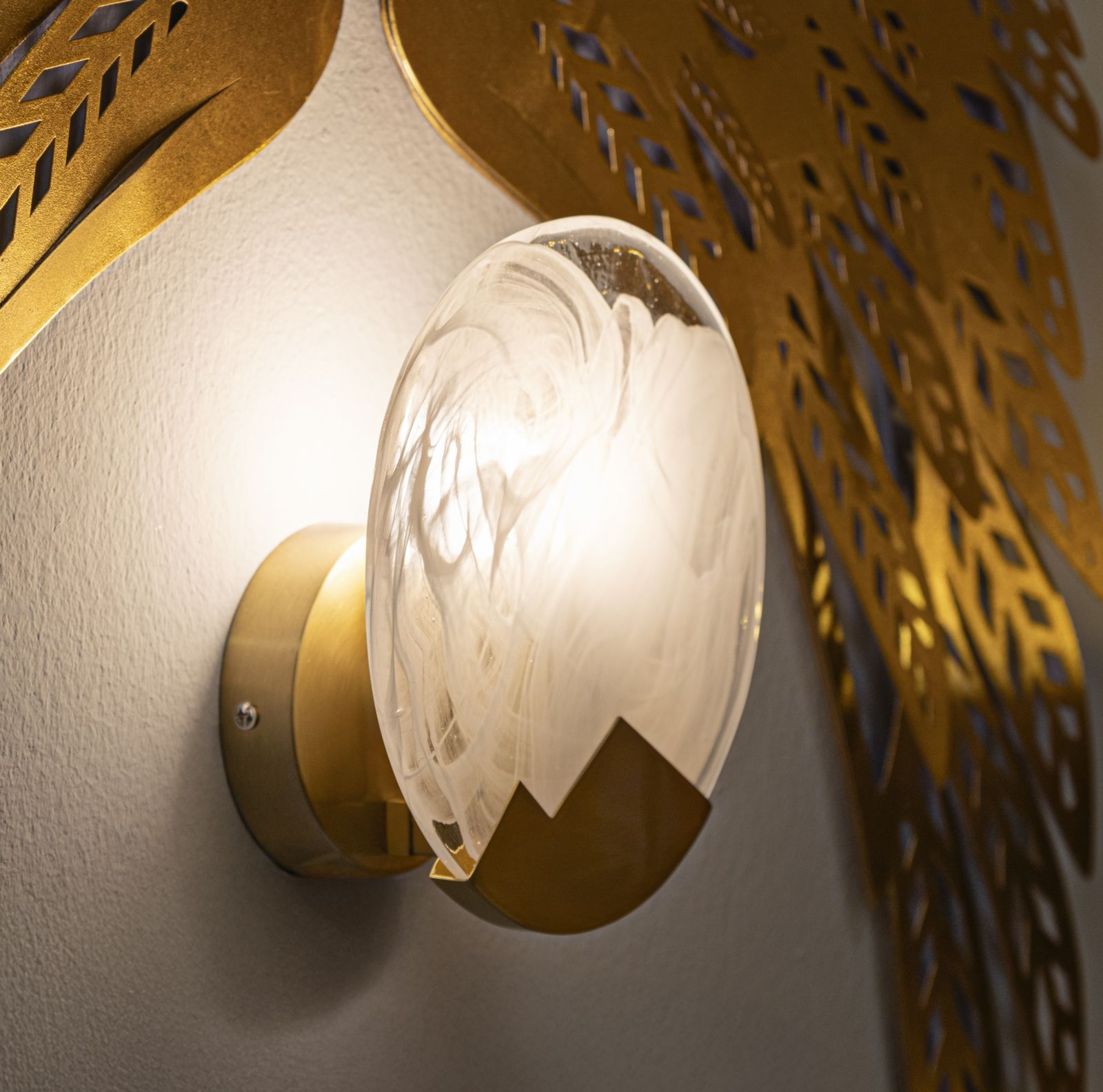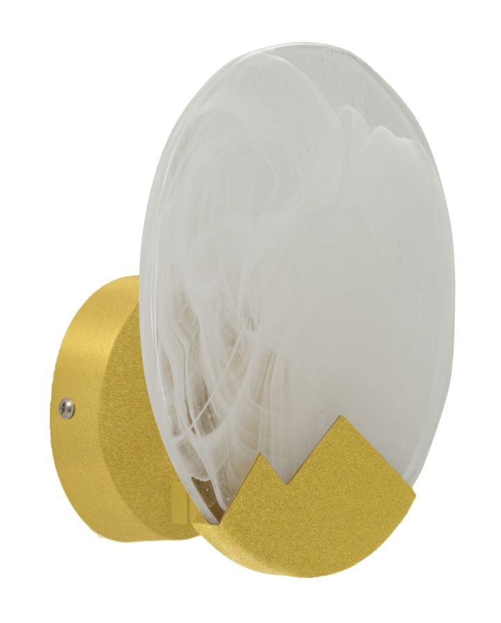 Lampă de perete inspirată de lună, o piesă de iluminat unică și fascinantă. Designul special al sticlei reușește să recreeze aspectul lunii, în timp ce baza aurită evocă conturul munților. Perfectă pentru a adăuga un element cosmic și romantic în dormitor, sau pentru a crea un punct focal interesant în living. Oferă un iluminat ambiental discret și deosebit, devenind în același timp o piesă de conversație captivantă. Acest produs este creat de Mauro Ferretti și disponibil prin CreativDeco, reprezentând excelența în design și calitate italiană. Aplica, fabricată din fier și sticlă, are dimensiunile de 20x10 cm și cântărește 0,6 kg.
