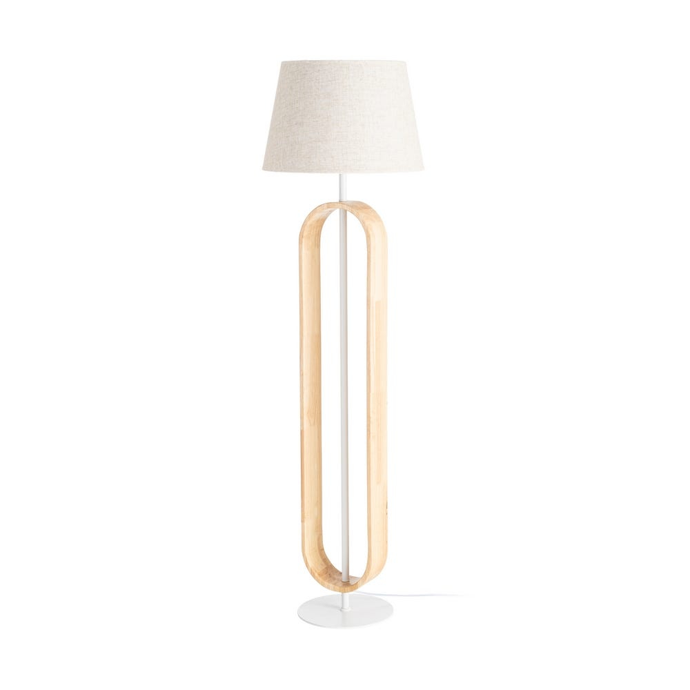 Lampadar din lemn natur și metal alb cu abajur din in bej aduce o lumină caldă pentru iluminat decorativ în living, dormitor sau hol. Silueta subțire combină un cadru sculptural din lemn cu elemente din metal, iar abajurul textil din in difuzează uniform lumina. Conectica pe soclu E27, alimentare 220–240 V • 50 Hz, compatibilitate 1 x 60 W (bec neînclus) pentru utilizare ușoară acasă.
