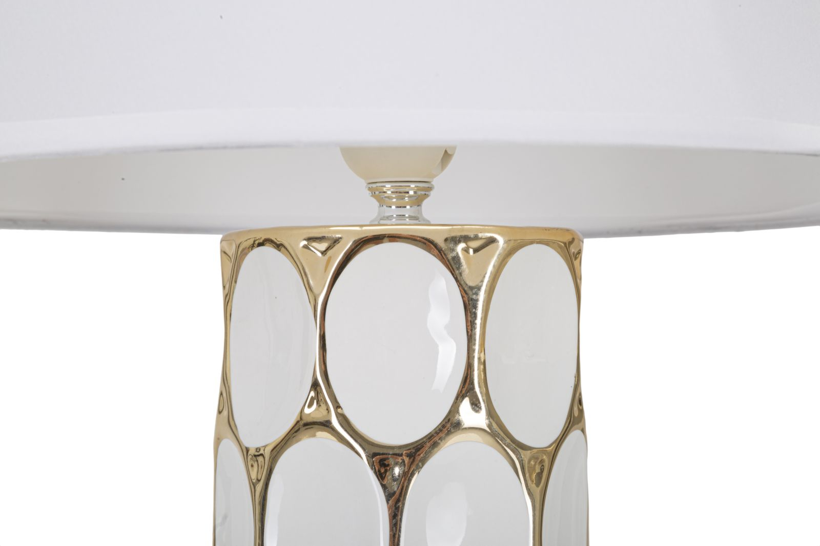 Setul de 2 veioze Glam Carv aduce eleganță și rafinament în orice interior, îmbinând perfect ceramică albă cu detalii aurii de inspirație glam. Baza cu forme ovale reliefate și abajurul alb creează un contrast subtil și sofisticat, oferind o lumină caldă și difuză, ideală pentru serile relaxante.
