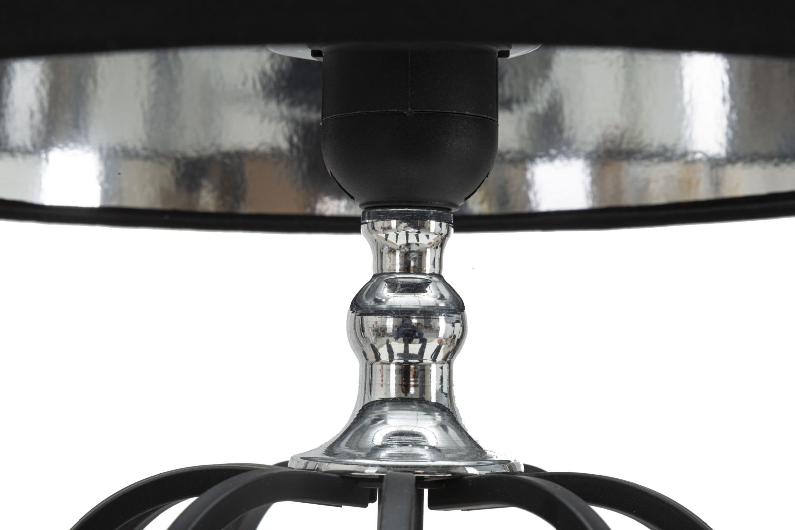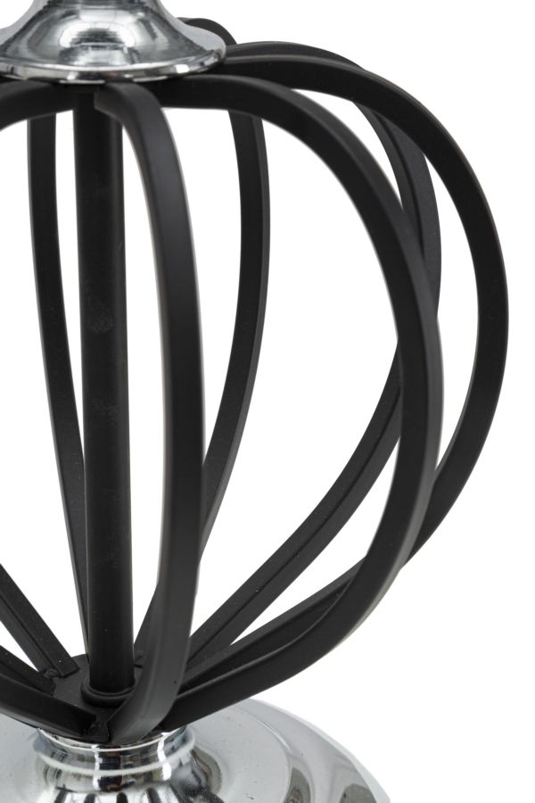 Modelul este realizat din metal in combinatia de contrast negru/argintiu cu abajurul din bumbac negru.