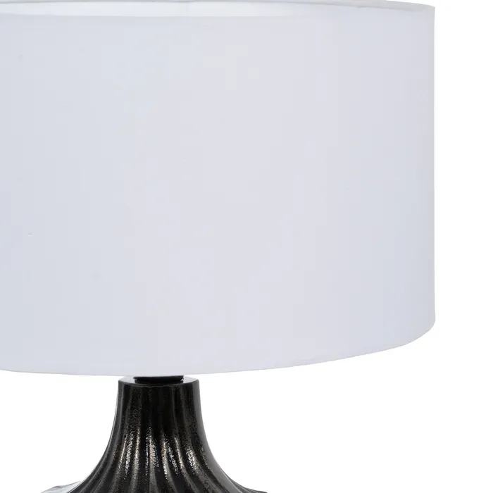 Această veioză elegantă, cu dimensiuni de 35,5 x 35,5 x 52,5 cm, impresionează prin baza sa din aluminiu finisată manual, oferind un aer unic și rafinat fiecărei încăperi. Baza, măsurând 21 x 21 x 32,5 cm, are un design sculptat, adăugând o notă de sofisticare subtilă. Abajurul din bumbac alb, cu dimensiunile de 35,5 x 35,5 x 20 cm, completează designul și oferă un iluminat uniform și plăcut, ideal pentru spații de living, dormitoare sau birouri elegante. Funcționează cu un bec de tip E27, fiind compatibilă cu o tensiune de 220V, și dispune de un cablu negru de 2,15 metri, pentru o amplasare flexibilă. Această piesă de iluminat este perfectă pentru cei care apreciază corpuri de iluminat de lux și detalii de decor lucrate cu atenție, disponibile la CreativDeco.