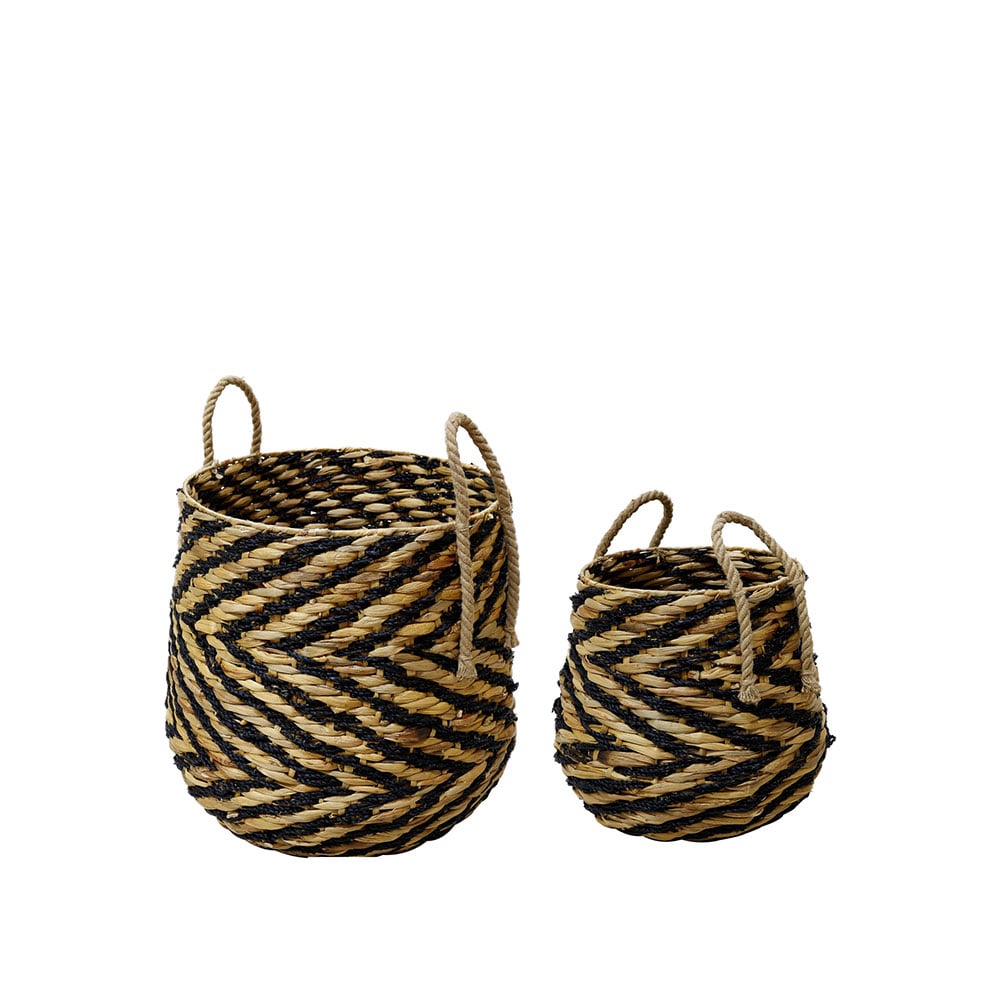 Set 2 coșuri împletite din zambilă de apă și structură de fier, ideale pentru depozitare decorativă în interioare relaxate. Modelul SPICA BASKET se remarcă prin aspectul boho natural și forma generoasă, fiind o soluție practică și estetică pentru textile, ghivece sau jucării.