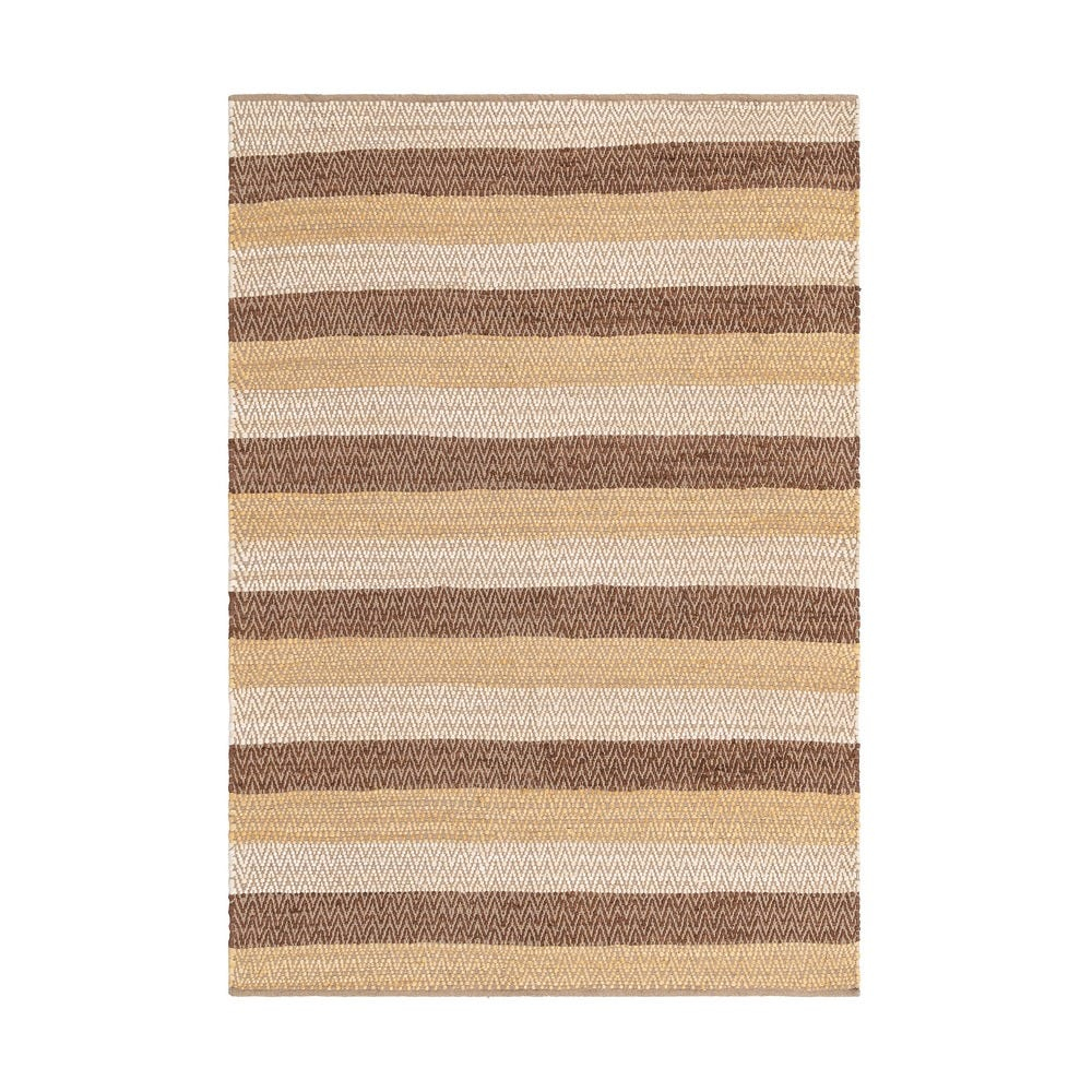 Covor din bumbac cu dungi care aduce căldură și ritm într-un living modern sau într-un dormitor calm, cu alternanțe de bej, nisip și maro ce unesc vizual piesele din jur și creează o zonă de relaxare prietenoasă.