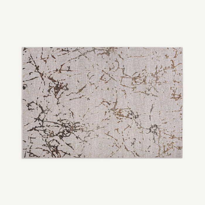 Dimensiuni totale: 290 x 200 x 1 cm Material: 100% poliester Înălțime fir: 1 cm Greutate: 13 kg Culoare predominantă: tonuri neutre (bej, crem, accente maronii) Recomandare utilizare: rezidențial și proiecte contractuale ușoare (living, dining, zone de lounge)Modelul prezintă un fond deschis suprapus de un decor ușor abstract, cu linii și picturi discrete care imită finețea patinei. Textura netedă și înălțimea redusă a firului păstrează suprafața ordonată, iar variațiile cromatice subtile adaugă profunzime fără a încărca spațiul.