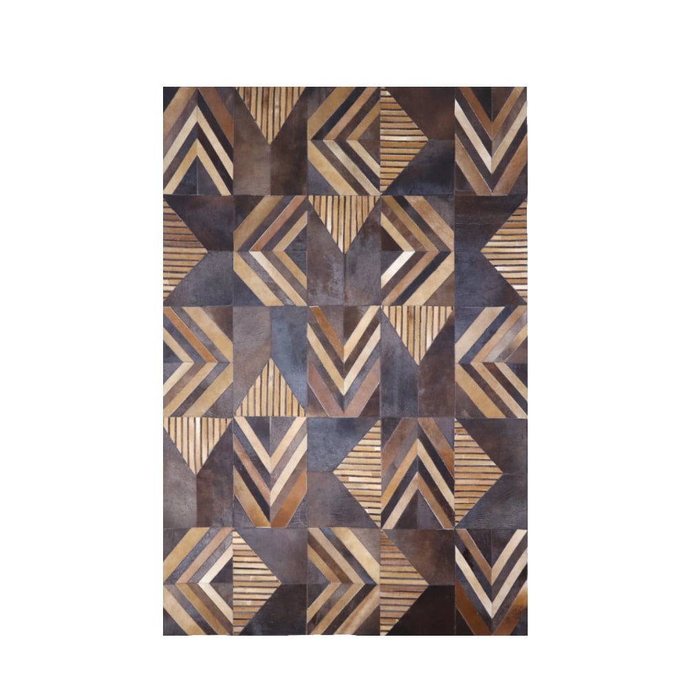 Covor dreptunghiular din piele naturală și lână în nuanțe de negru și maro, creat pentru interioare moderne ce combină simplitatea geometrică cu materialele naturale. Modelul VICTORY adaugă textură, contrast și căldură într-un mod subtil, dar rafinat.