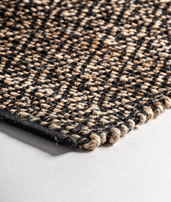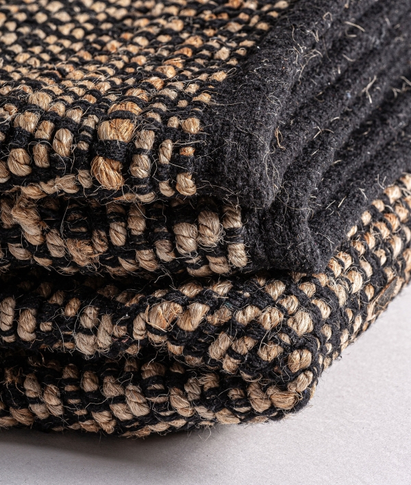 Covorul dreptunghiular ELARA este o piesă de design cu personalitate, ce combină textura naturală a iutei cu rafinamentul bumbacului, într-o nuanță elegantă de negru intens. Perfect pentru interioare cu accente industriale, vintage sau moderne, covorul aduce profunzime și contrast vizual oricărui spațiu.