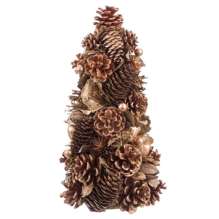 Adaugă un strop de strălucire și eleganță decorului tău de sărbători cu acest brad decorativ auriu, realizat din conuri de pin, frunze și mere, având dimensiunile de 16 x 16 x 33 CM. Perfect pentru a fi plasat pe masă, pe rafturi sau în colțurile casei, acest brad oferă un plus de eleganță și un farmec festiv oricărui spațiu. Cu detaliile sale aurii și designul autentic, se potrivește perfect într-un decor de Crăciun elegant, modern sau rustic. Găsește acest produs la CreativDeco și transformă-ți casa într-un loc plin de magie, bucurie și spirit de sărbătoare.