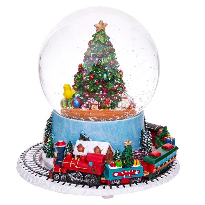 Acest glob cu apă, cu dimensiunile de 16,50 X 16,50 X 16,50 CM, aduce un farmec de poveste în decorul tău de Crăciun. Decorat cu un pom de Crăciun împodobit și un trenuleț care se învârte în jurul peisajului, acest glob cu efect de ninsoare și mișcare funcționează prin mecanism de cheiță, adăugând un plus de autenticitate și tradiție. Muzica plăcută și detaliile festive îl fac perfect pentru decorațiuni interioare sau pentru a fi oferit drept cadou deosebit. Ideal pentru a crea o atmosferă magică în casa ta, acest glob va fi cu siguranță piesa centrală a sezonului. Descoperă mai multe decorațiuni de Crăciun și globuri de zăpadă doar la CreativDeco!