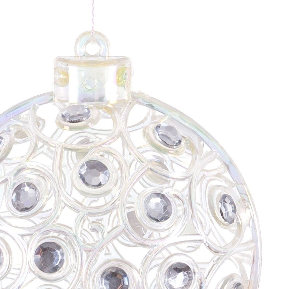 Globurile sunt realizate cu o structură deschisă ce permite luminii să se reflecte prin decorațiunile tip cristal, creând reflexii discrete și străluciri elegante. Efectul transparent și detaliile argintii oferă o notă luxoasă, ideală pentru decoruri festive în tonuri albe, argintii sau pastel.