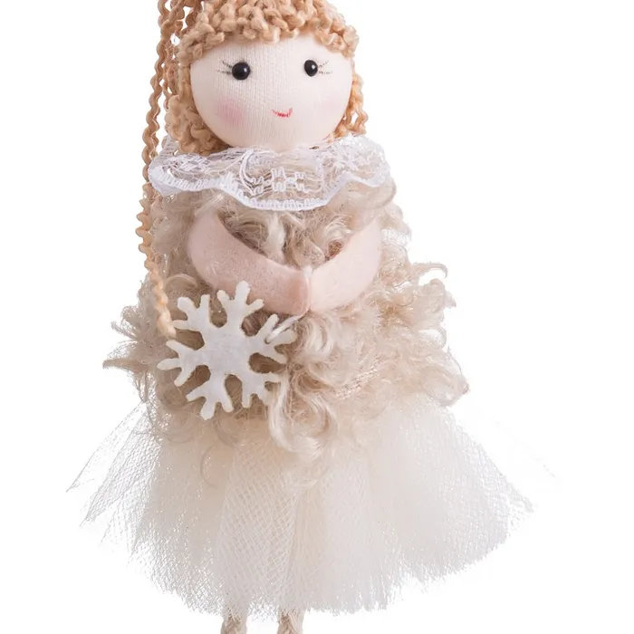 Îngeraș decorativ bej din material textil, ideal pentru un decor festiv elegant și cald.