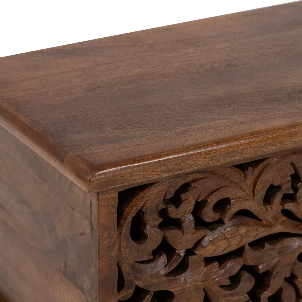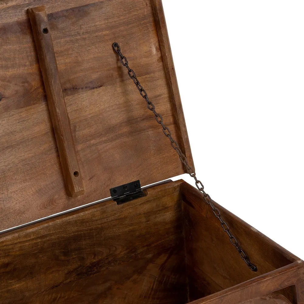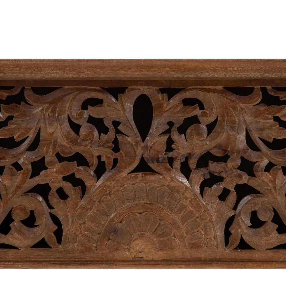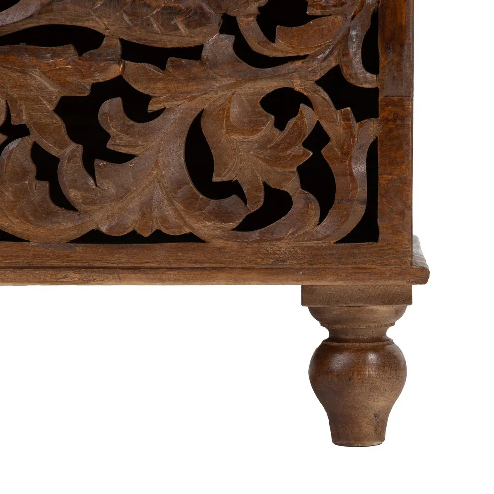 Acest cufăr-banchetă sculptat din lemn de mango lacuit, măsurând 117 cm lățime, 46 cm adâncime și 45,50 cm înălțime, este o piesă de mobilier versatilă și elegantă. Modelul vintage din lemn masiv de mango cu finisaj lacuit oferă durabilitate și strălucire. Fața decorată cu un model floral sculptat în relief adaugă un element de artizanat și rafinament. Importat de CreativDeco, acest cufăr spaniol combină funcționalitatea cu estetica, fiind perfect pentru spații care necesită soluții de depozitare stilate. Cufere-banchetă sunt apreciate pentru dualitatea lor, oferind atât loc de șezut, cât și spațiu de depozitare.